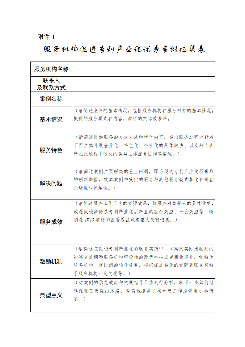 附件: 1.服务机构促进专利产业化优秀案例征集表