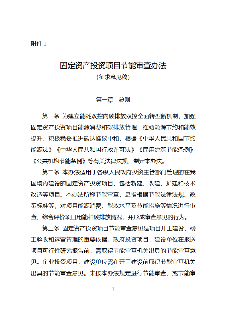 国家发改委|《固定资产投资项目节能审查办法(征求意见稿)》征求意见公告