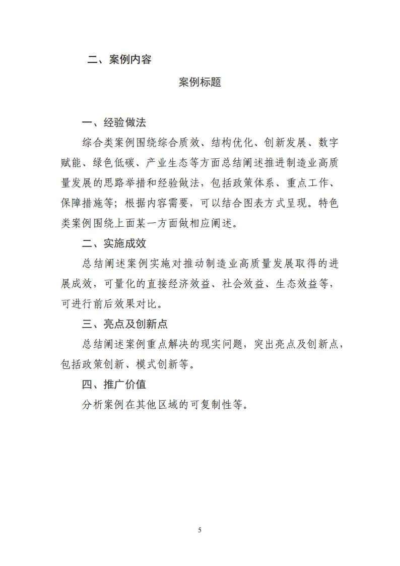 (二)案例须主题明确、重点突出、逻辑清晰、材料真实,主要指标全省领先或进步较快,推动制造业高质量发展取得显著成效,有较强的借鉴意义。