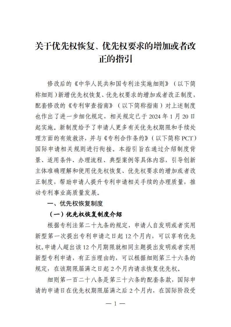 国家知识产权局|关于优先权恢复、优先权要求的增加或者改正的指引