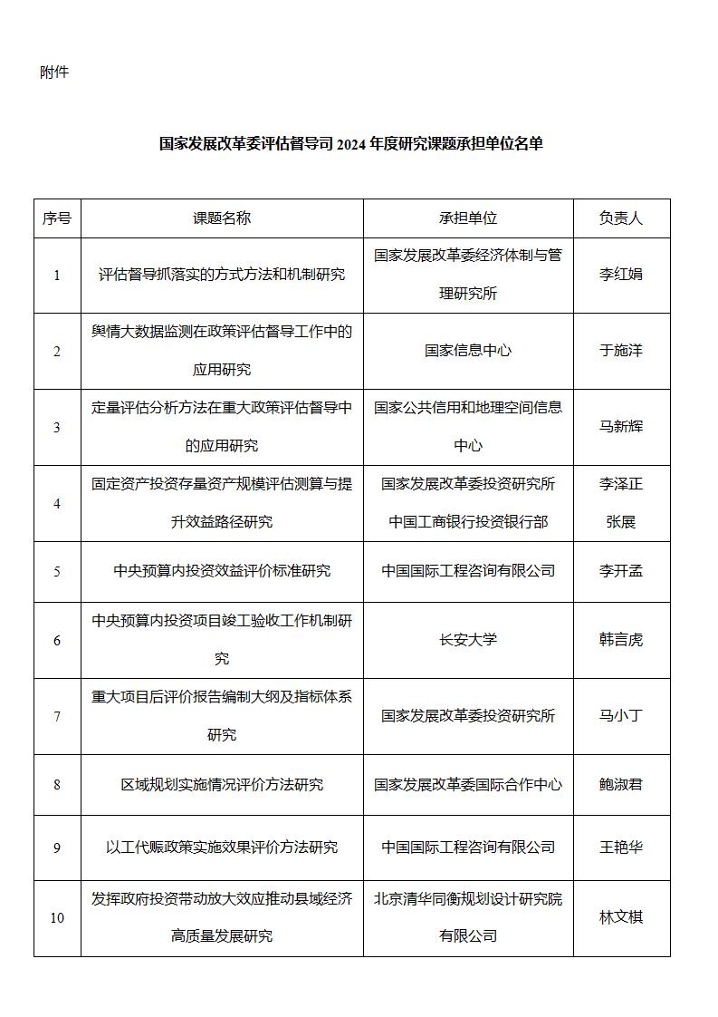 附件:国家发展改革委评估督导司2024年度研究课题承担单位名单