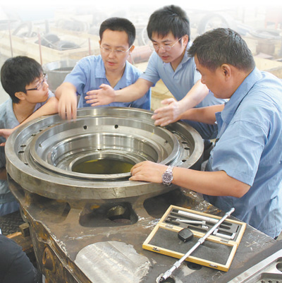 | 研发人员在讨论新产品装配。 中国煤炭科工集团供图 |