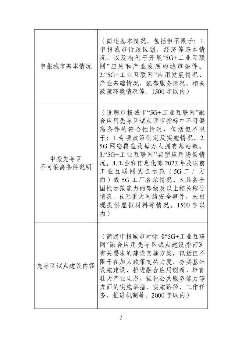 附件:“5G+工业互联网”融合应用先导区试点申报表