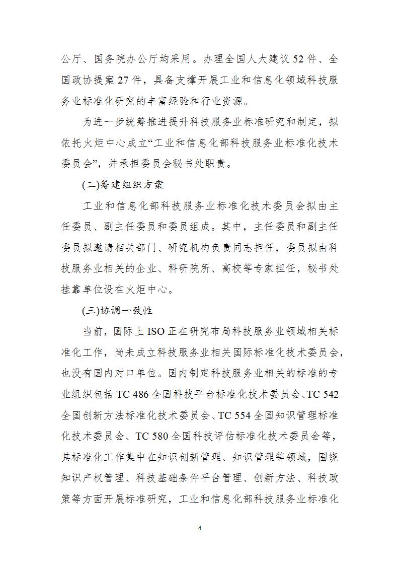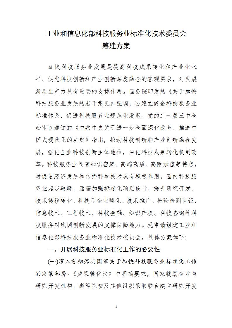 工业和信息化部科技服务业标准化技术委员会筹建方案公示