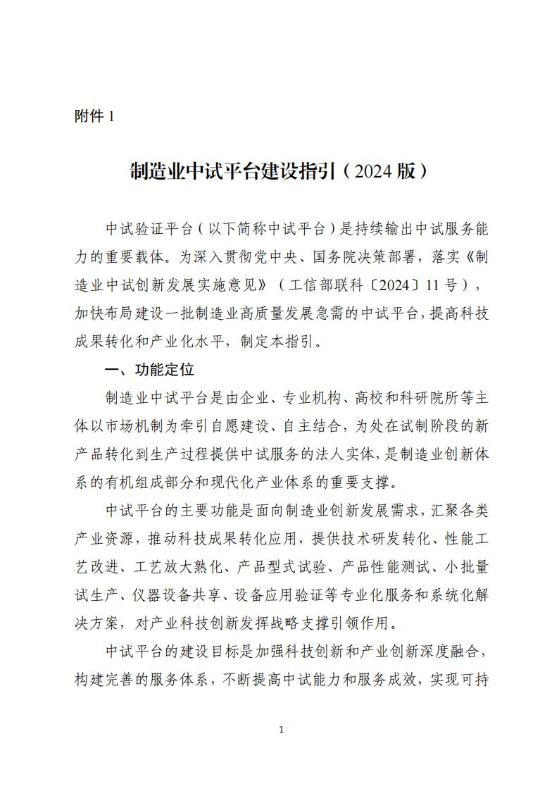 附件:1.制造业中试平台建设指引(2024版)