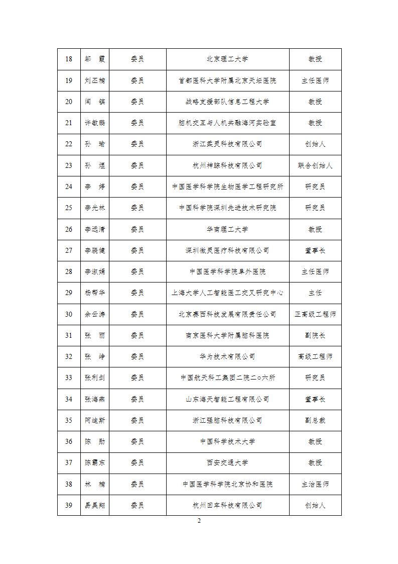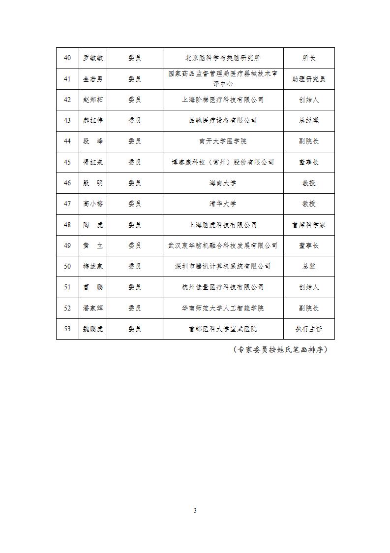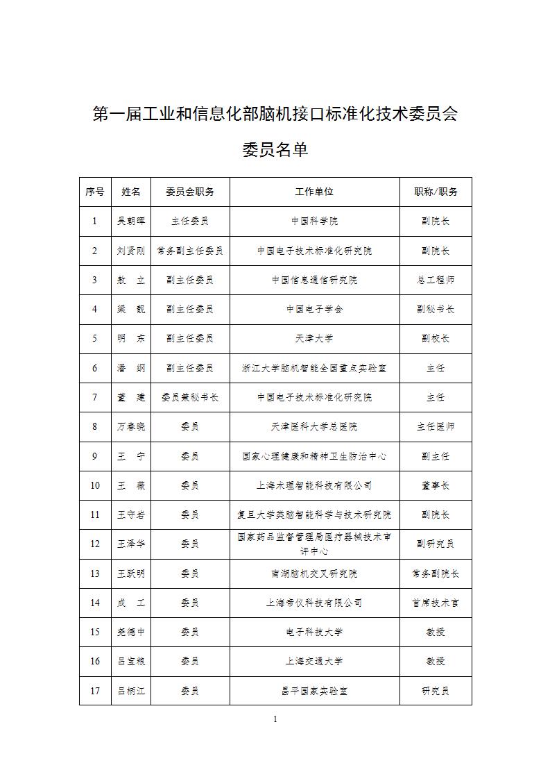 工业和信息化部脑机接口标准化技术委员会委员名单公示