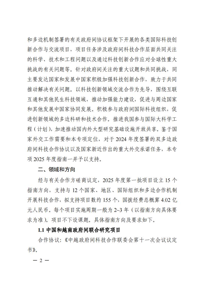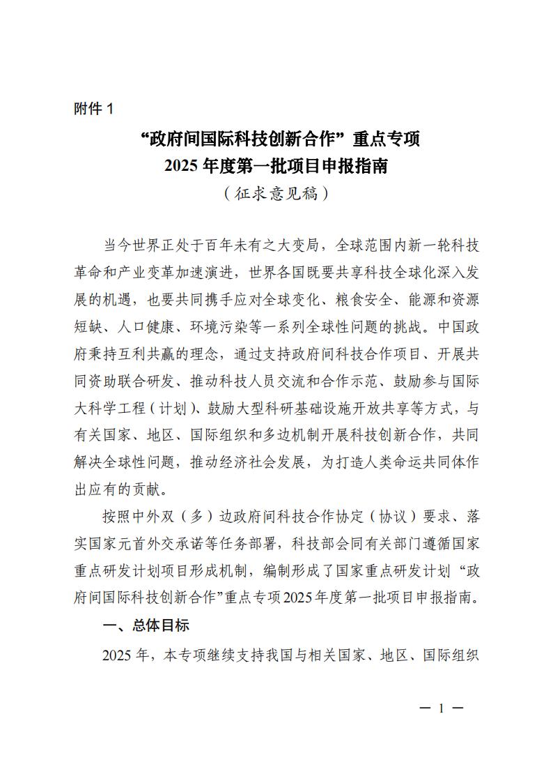关于对国家重点研发计划“政府间国际科技创新合作”等2个重点专项2025年度有关批次项目申报指南征求意见的通知