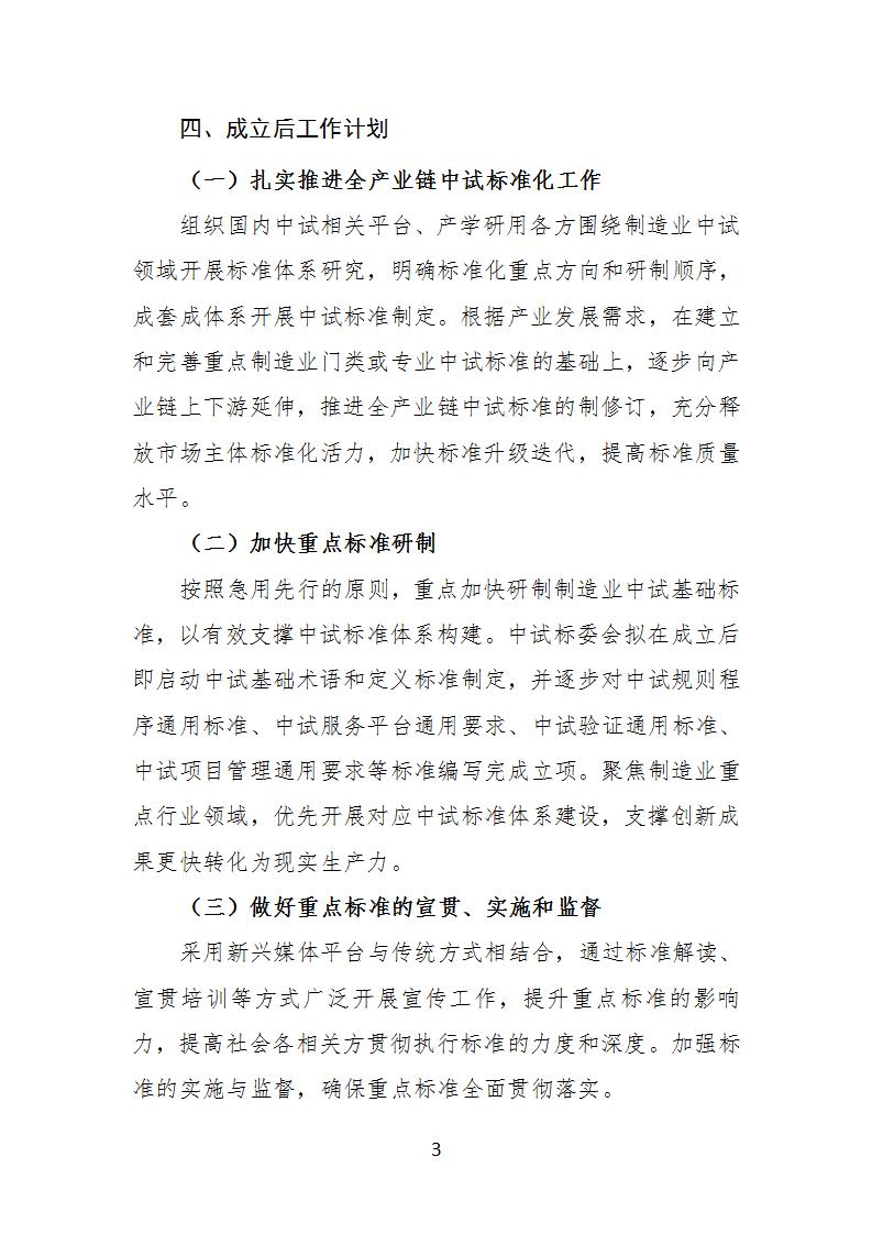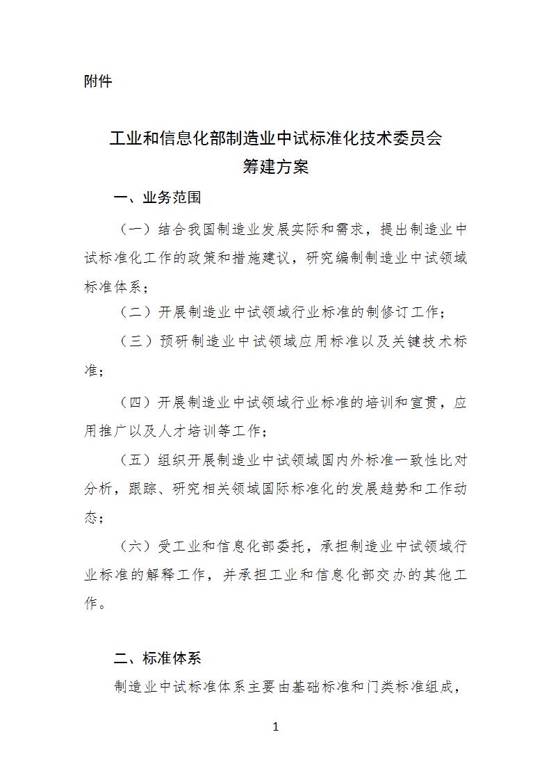 工业和信息化部制造业中试标准化技术委员会筹建方案公示