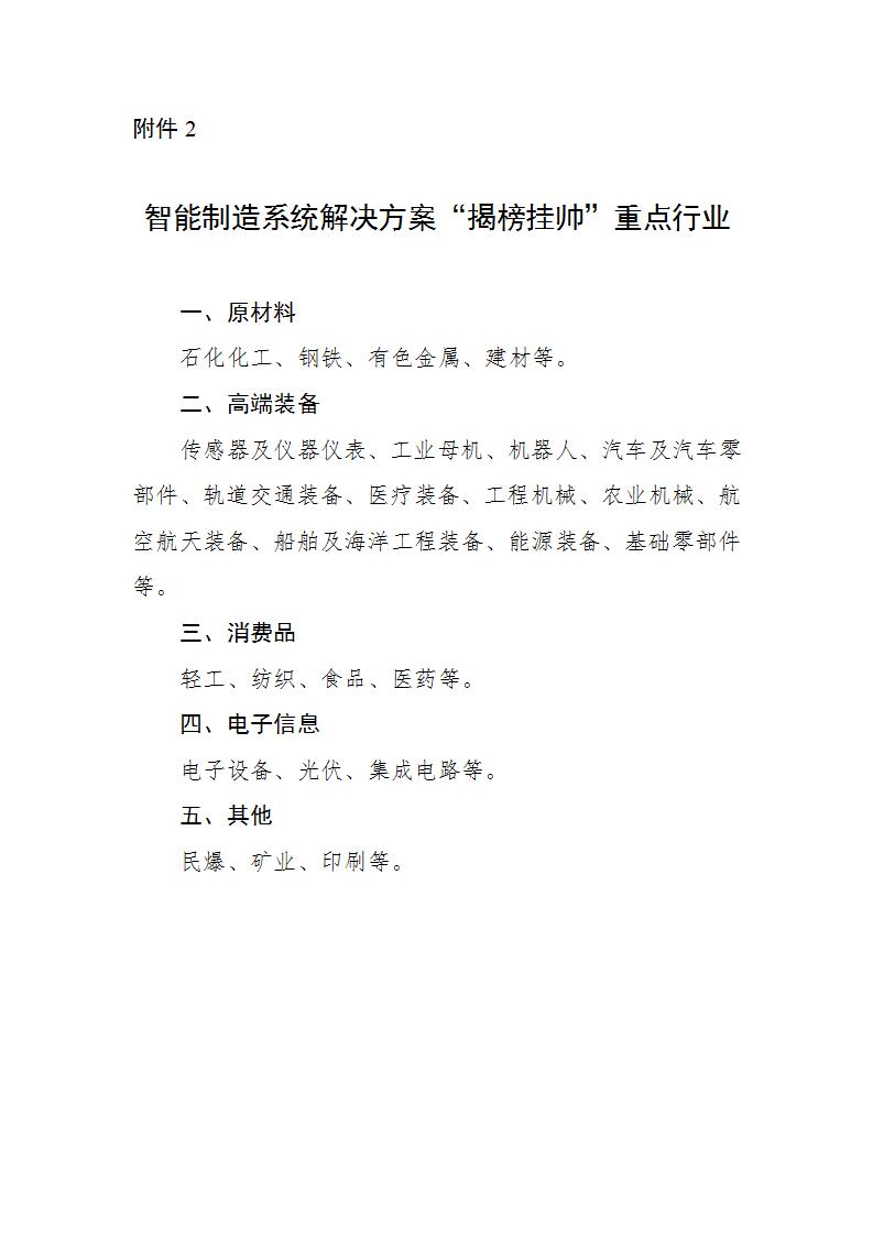 (五)工业和信息化部、市场监管总局共同组织项目遴选并公布智能制造系统解决方案揭榜单位和相应揭榜任务。