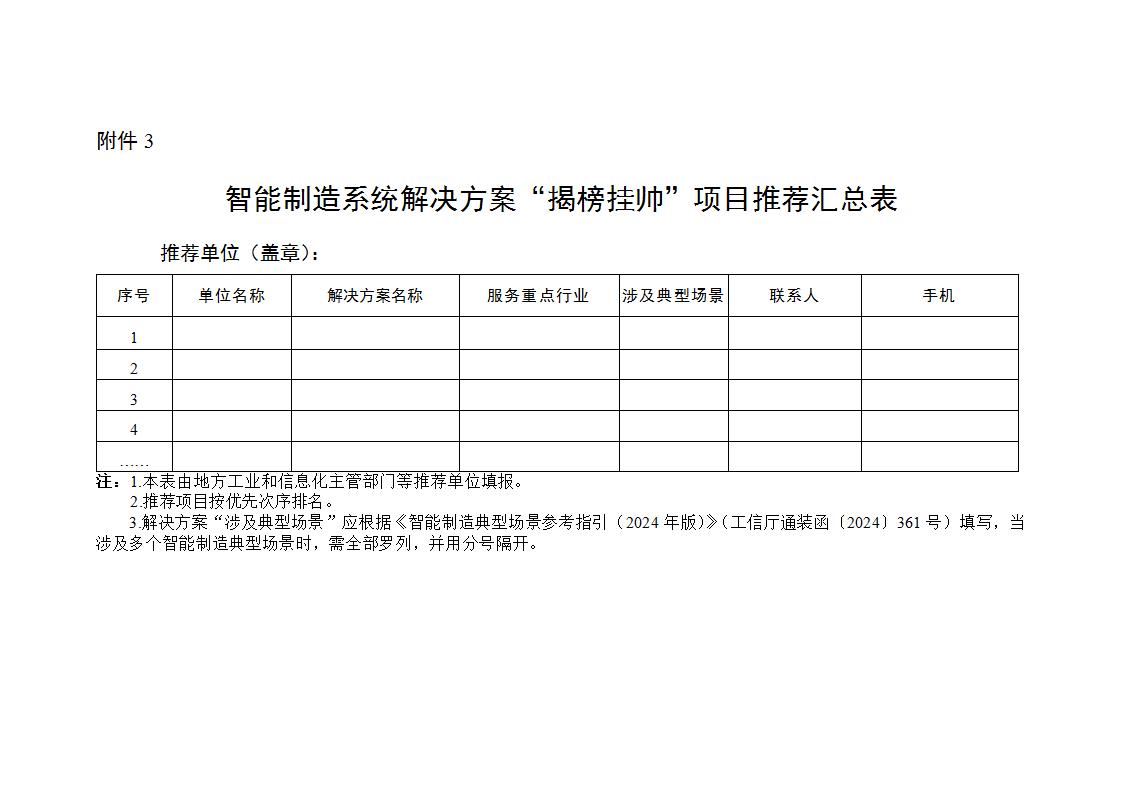 两部门关于开展2024年度智能制造系统解决方案“揭榜挂帅”申报工作的通知