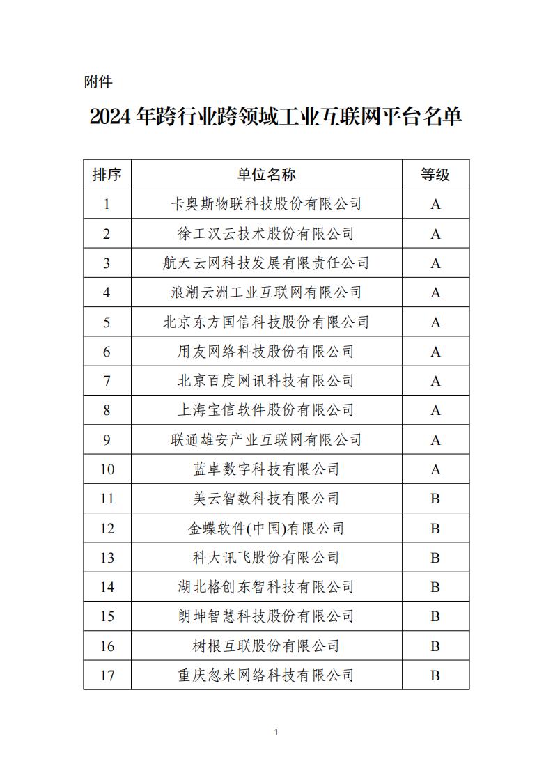 为贯彻党的二十届三中全会关于“发展工业互联网”的决策部署,按照《工业和信息化部办公厅关于组织开展2024年跨行业跨领域工业互联网平台动态评价工作的通知》(工信厅信发函〔2024〕293号)的工作安排,经过地方初审、企业答辩、现场核查等环节,形成了2024年跨行业跨领域工业互联网平台动态评价结果。