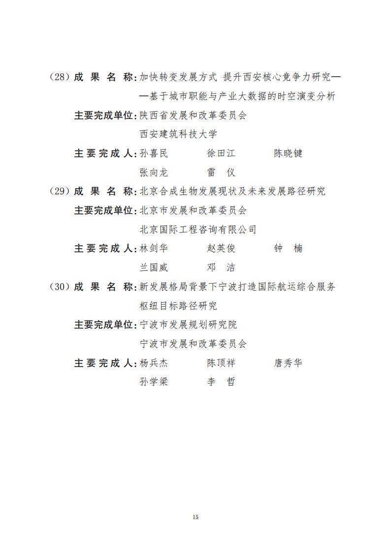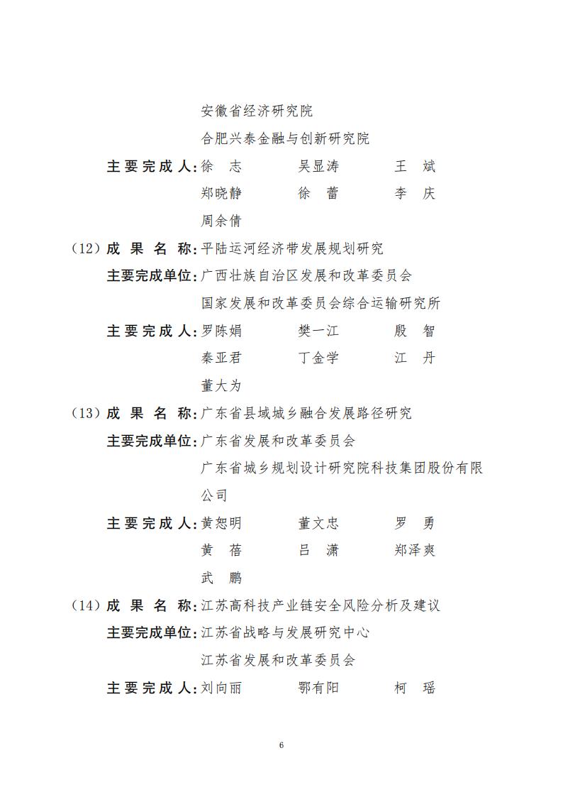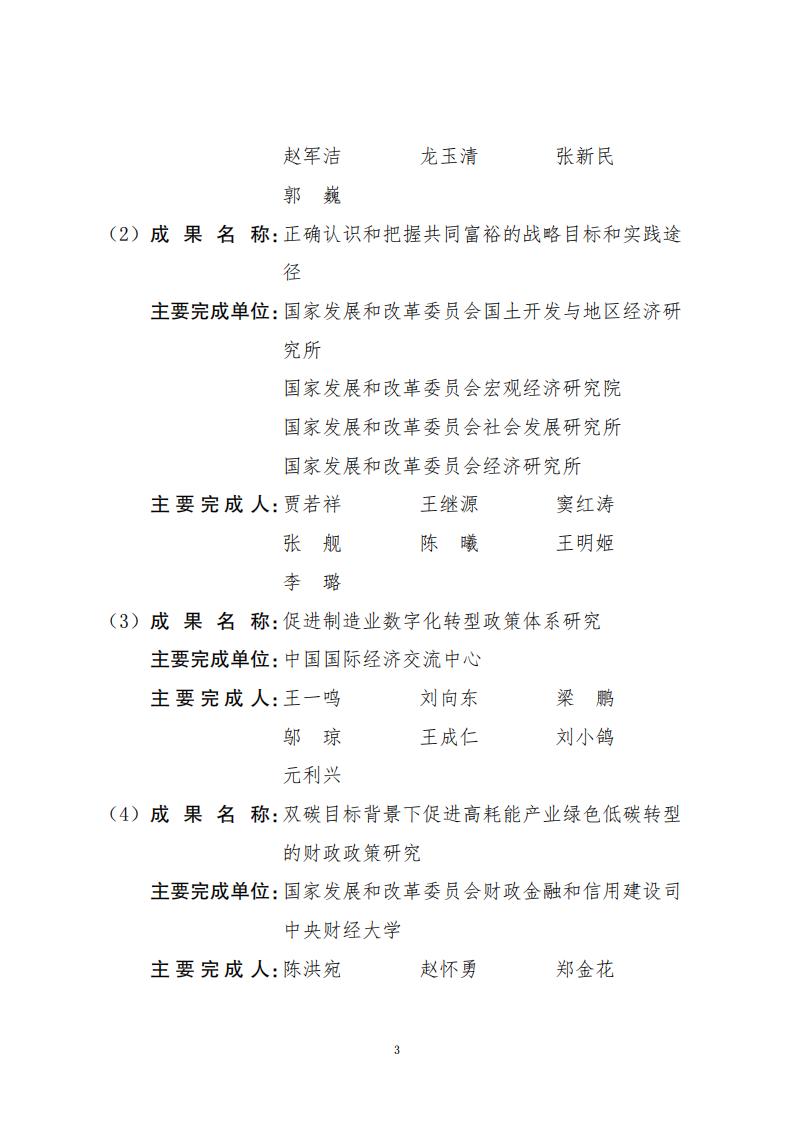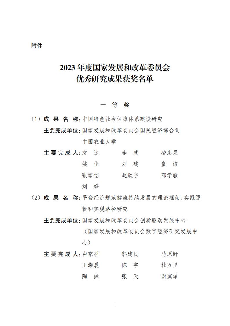 附件:2023年度国家发展和改革委员会优秀研究成果获奖名单