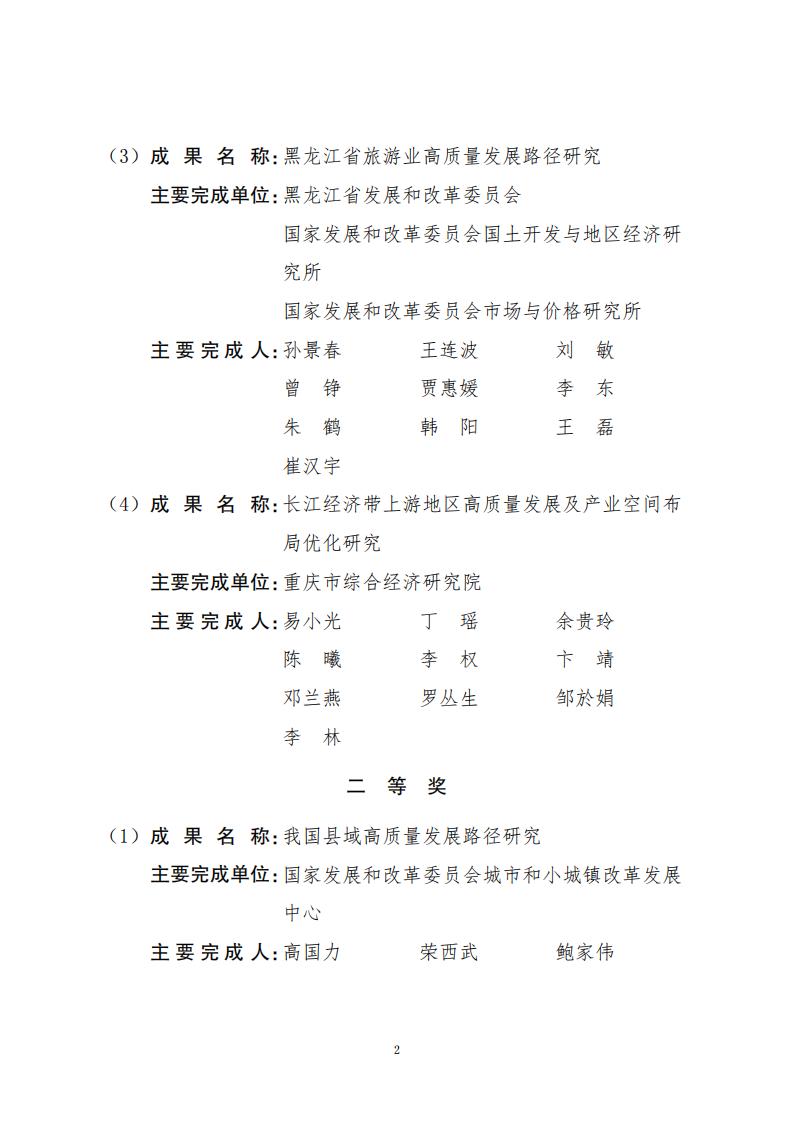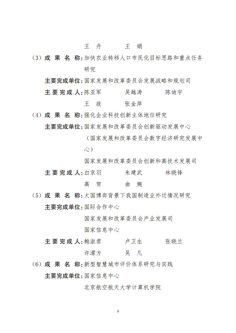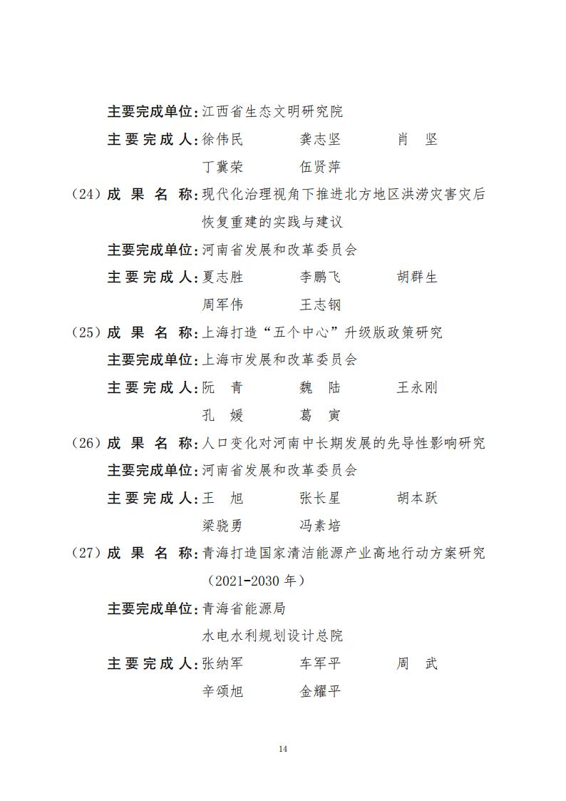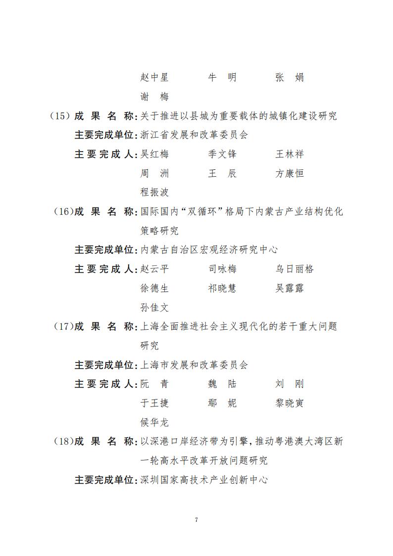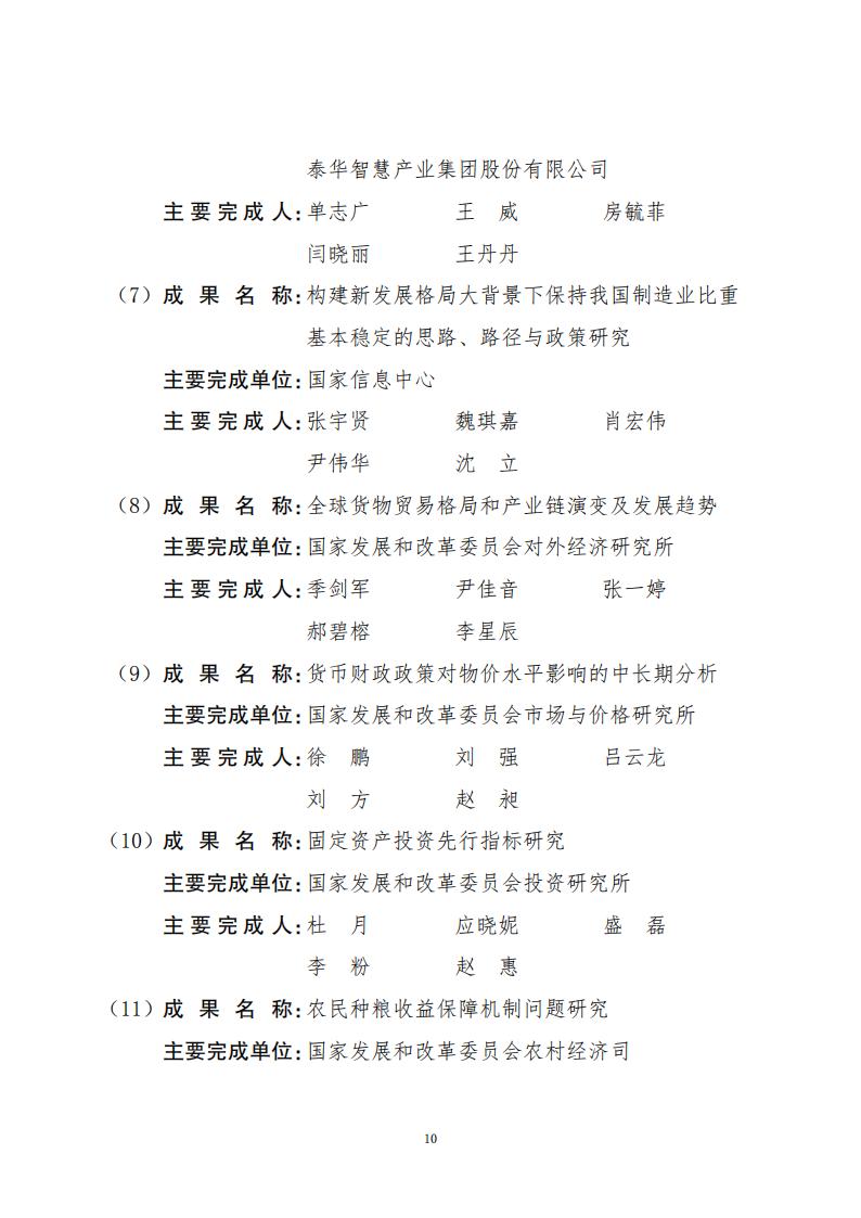 附件:2023年度国家发展和改革委员会优秀研究成果获奖名单