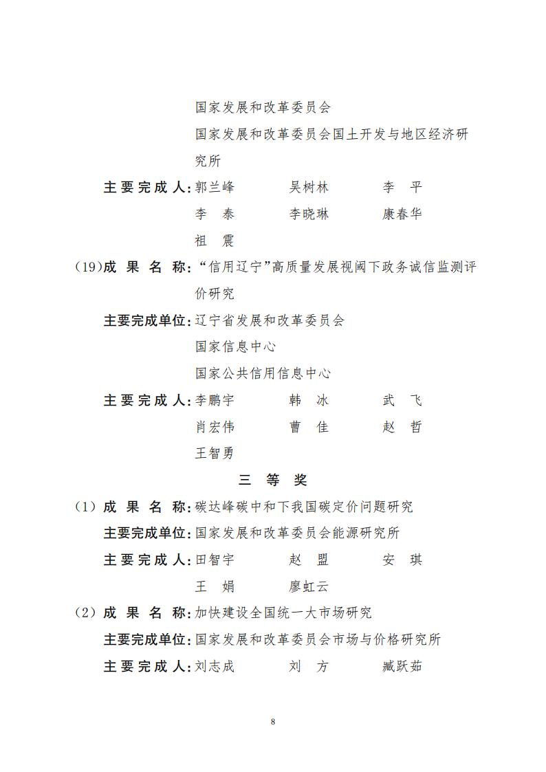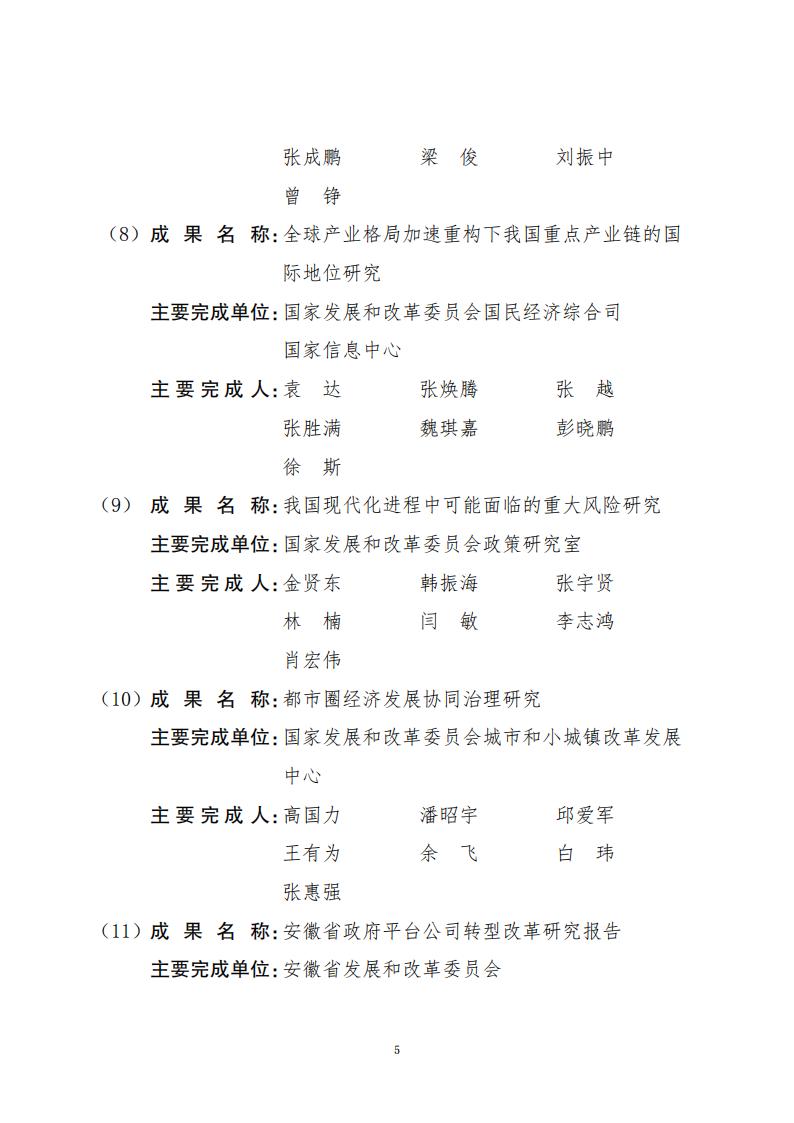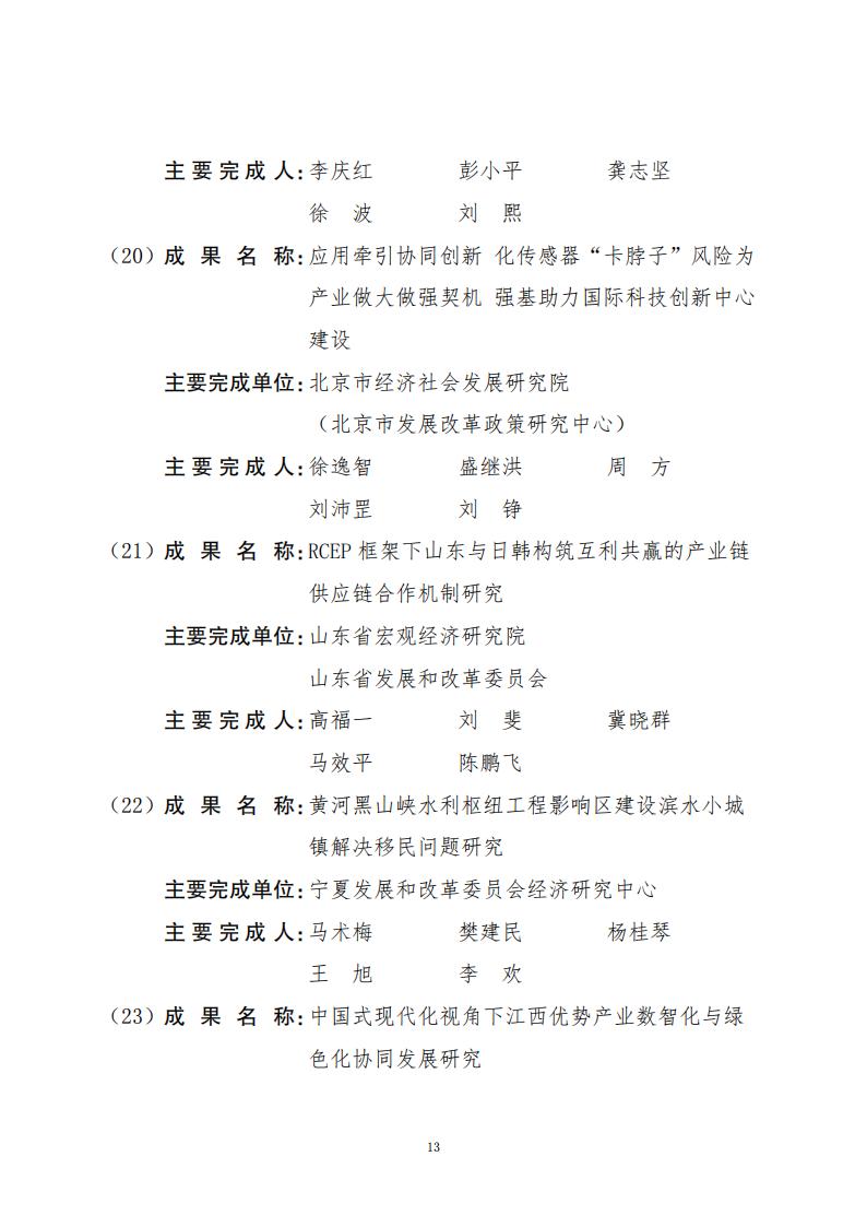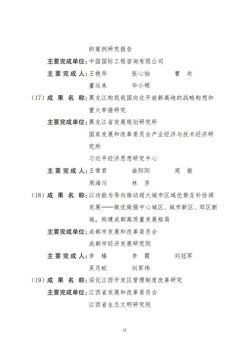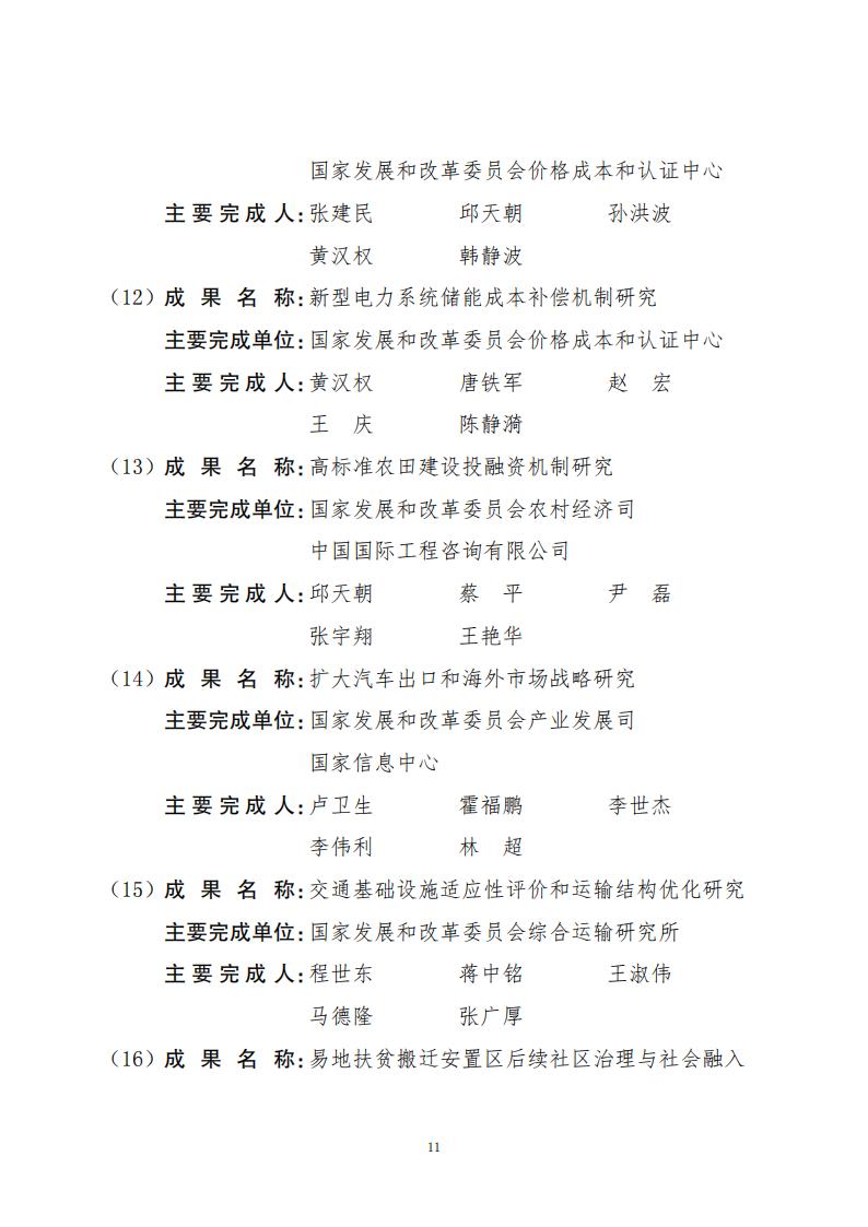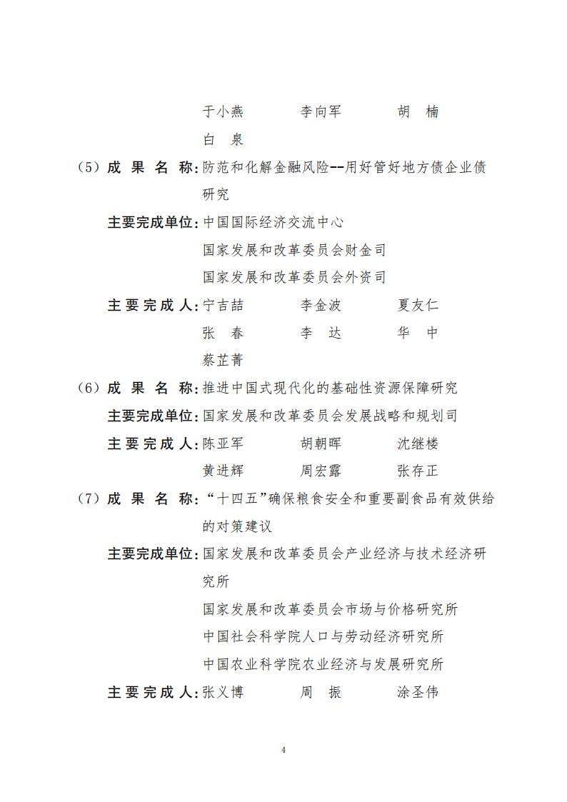 关于2023年度国家发展和改革委员会优秀研究成果获奖名单的公示