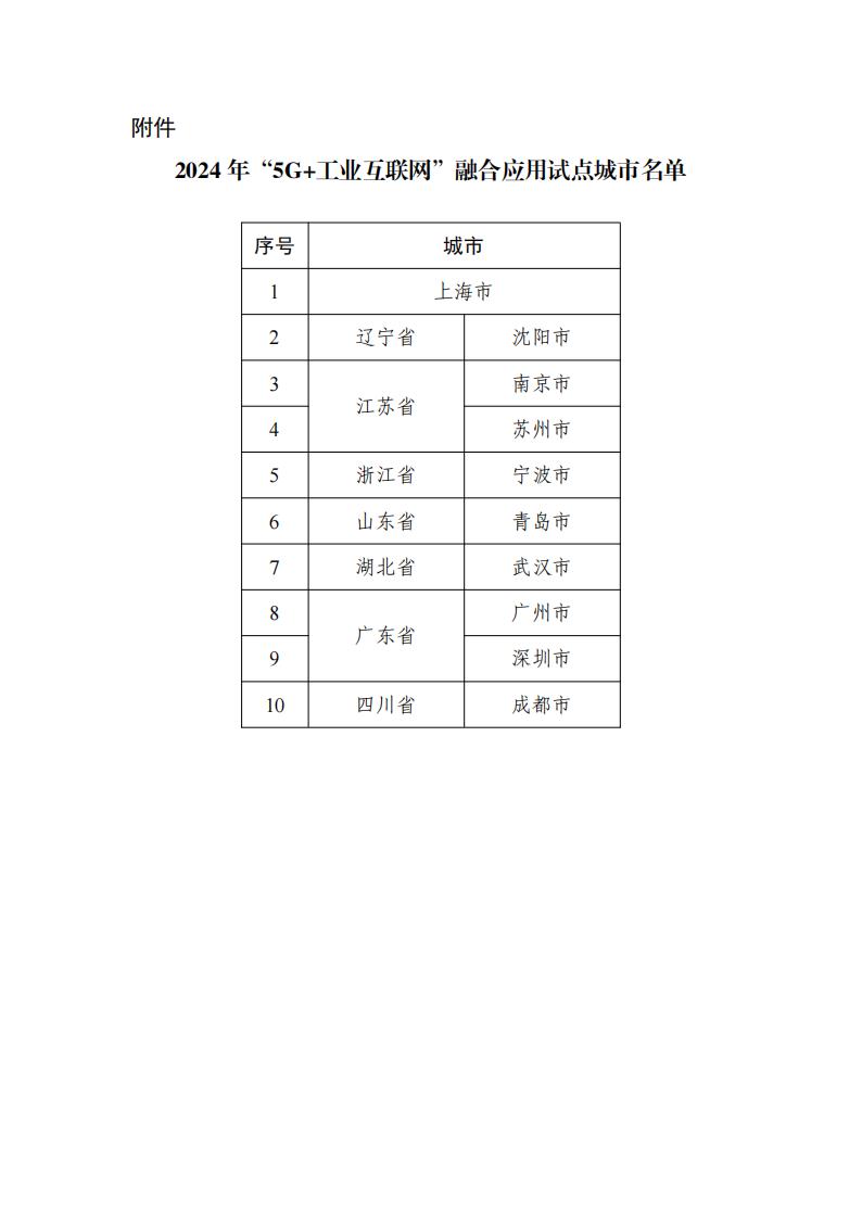 工信部|关于2024年“5G+工业互联网”融合应用试点城市名单的公示