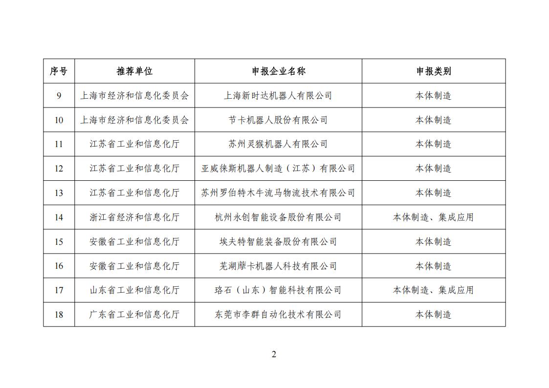 根据《工业机器人行业规范条件(2024版)》《工业机器人行业规范条件管理实施办法(2024版)》(部公告2024年第20号)有关要求,我部组织各地工业和信息化主管部门、有关中央企业开展了2024年度工业机器人行业规范企业公告申报工作。经审核,现将符合《工业机器人行业规范条件(2024版)》的企业名单予以公示,请社会各界监督。如有异议,请在公示期内将书面意见反馈至装备工业一司。