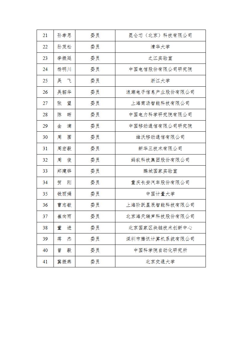 第一届工业和信息化部人工智能标准化技术委员会由41名委员组成,秘书处由中国信息通信研究院承担。