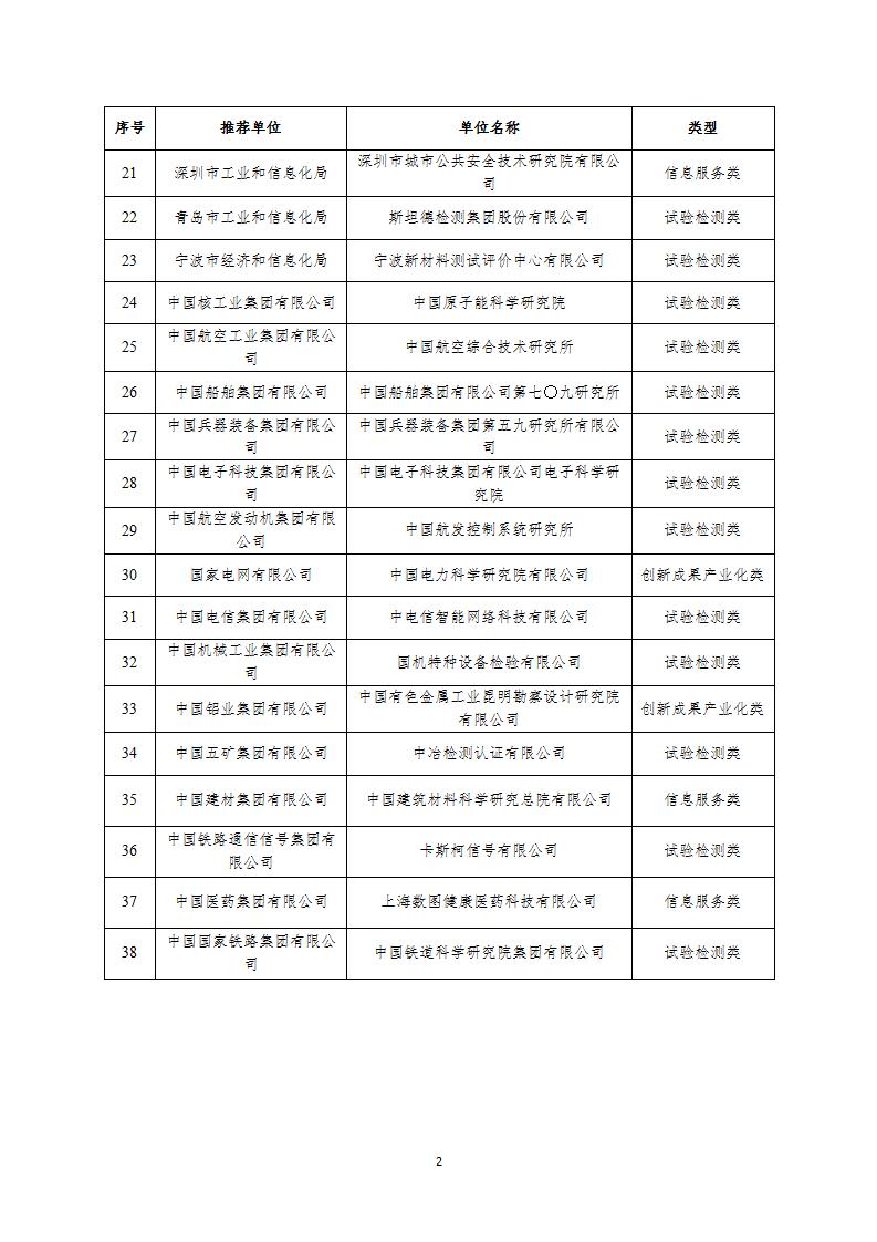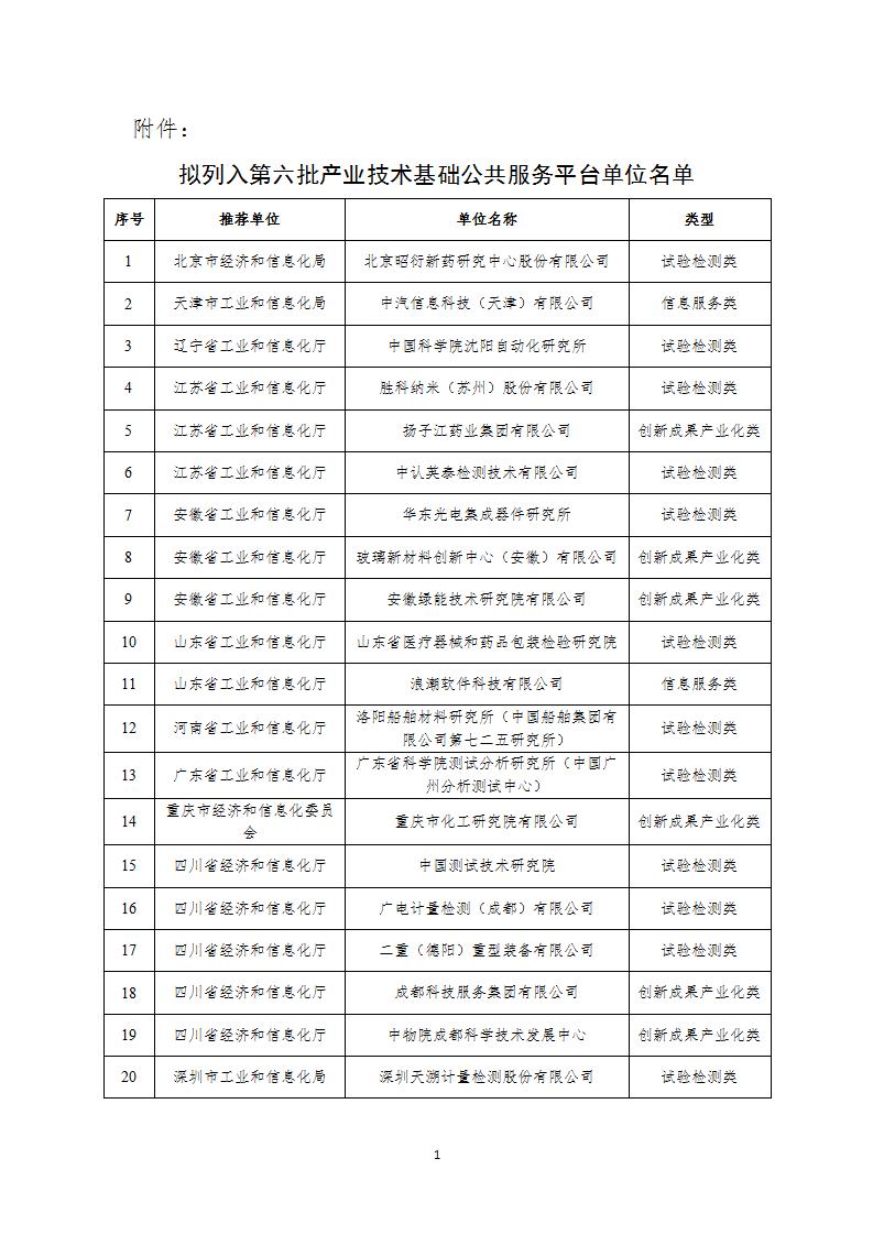 拟列入工业和信息化部第六批产业技术基础公共服务平台名录的建议名单公示