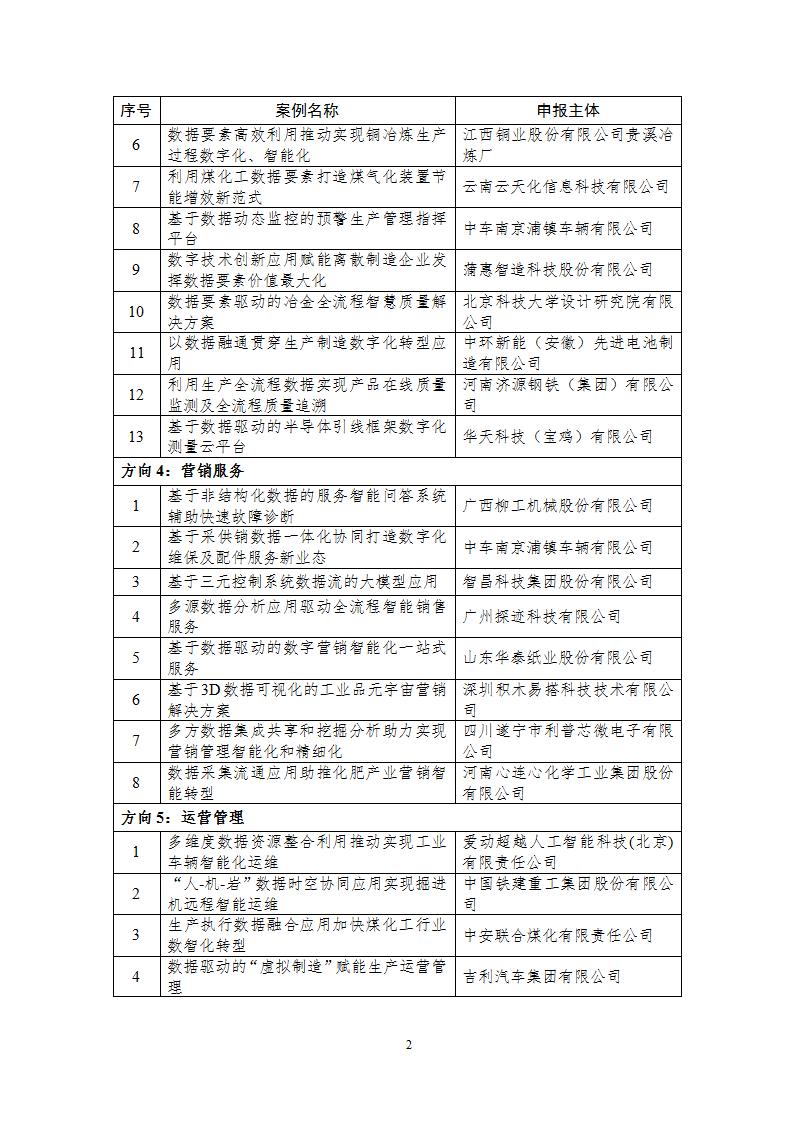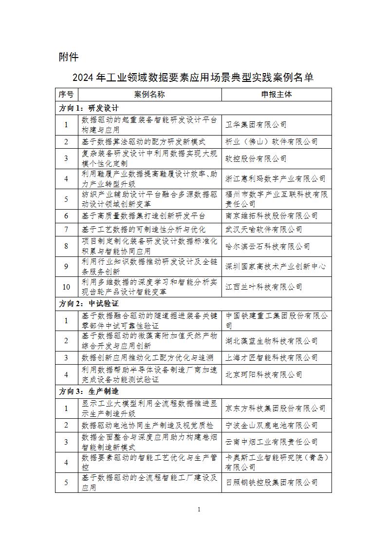 根据《工业和信息化部办公厅关于组织开展2024年工业领域数据要素应用场景征集工作的通知》(工信厅信发函〔2024〕331号),经申报主体自主申报、地方推荐、专家评审等环节,形成了2024年工业领域数据要素应用场景典型实践案例名单。
