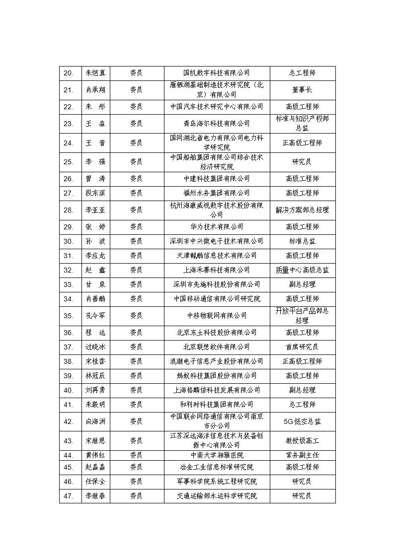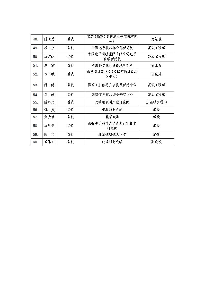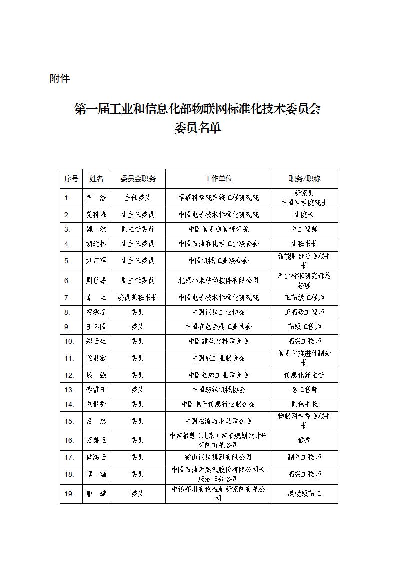 工业和信息化部物联网标准化技术委员会委员名单公示