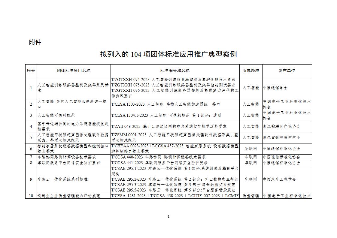 公开征求《人工智能训练服务器整机及集群系列标准》等104项团体标准应用推广典型案例的意见
