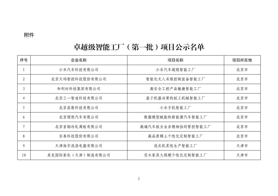 工信部|关于卓越级智能工厂(第一批)项目的公示