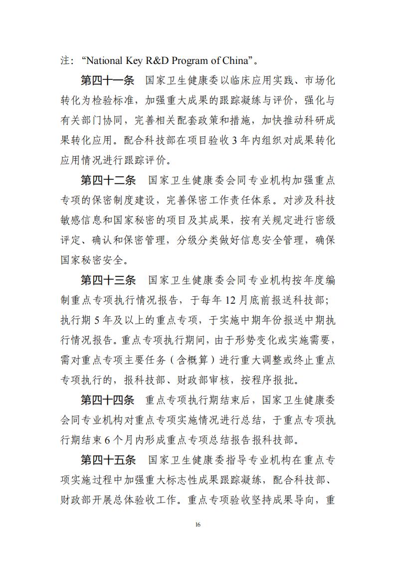 附件:《国家卫生健康委主责国家重点研发计划重点专项管理实施细则》