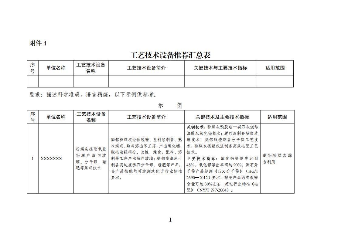 工信部等三部门联合开展《国家工业资源综合利用先进适用工艺技术设备目录》推荐工作