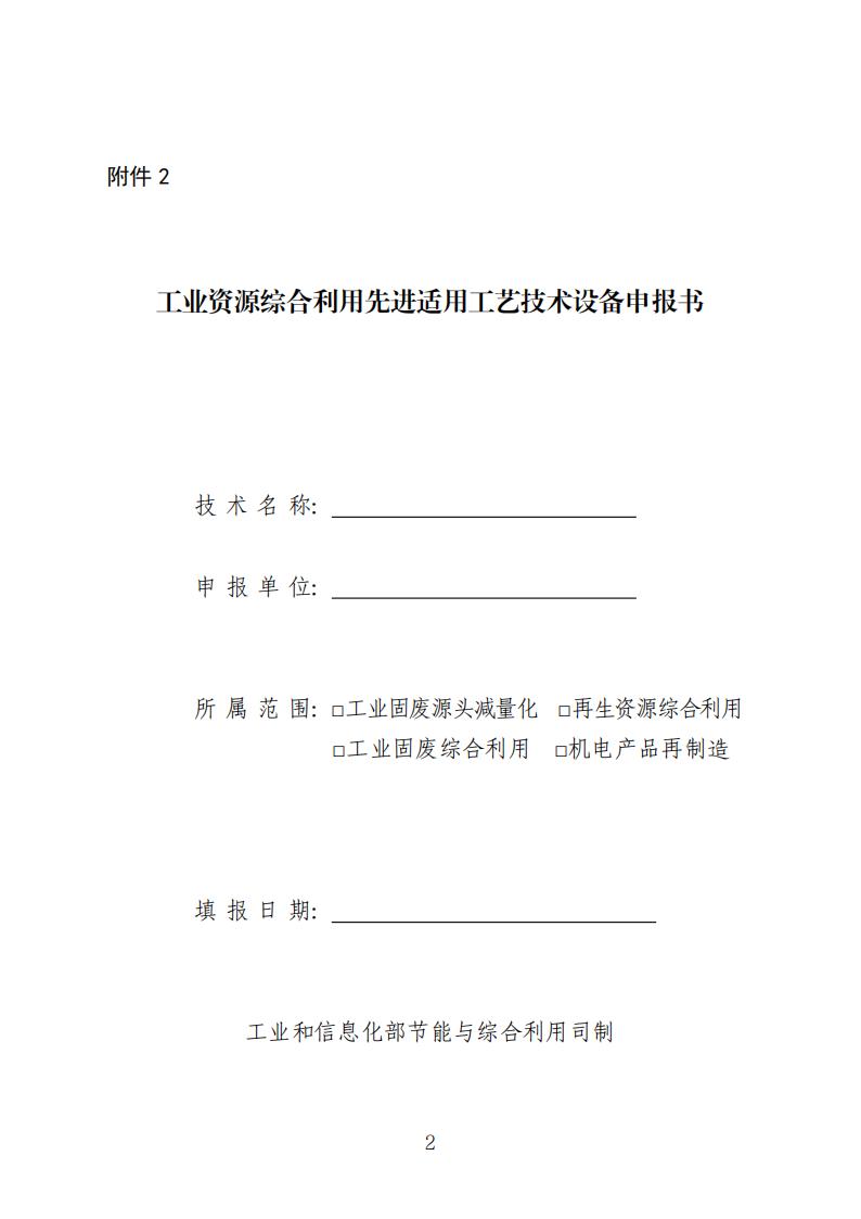 2.工业资源综合利用先进适用工艺技术设备申报书