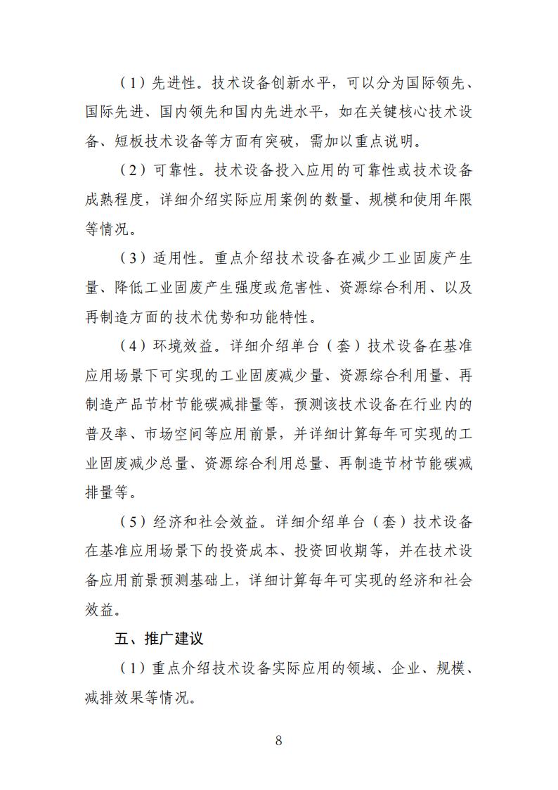 为贯彻落实《固体废物污染环境防治法》,加快推进工业固废源头减量和规模化、高值化利用,提升再生资源综合利用水平,发展高端智能再制造,拟遴选发布一批工业资源综合利用先进适用工艺技术设备目录。现开展推荐工作,有关事项通知如下: