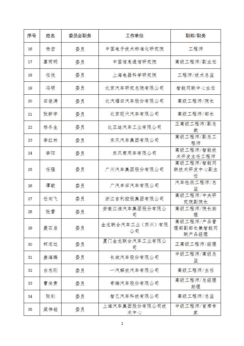 附件:全国汽车标准化技术委员会智能网联汽车分技术委员会第二届委员名单