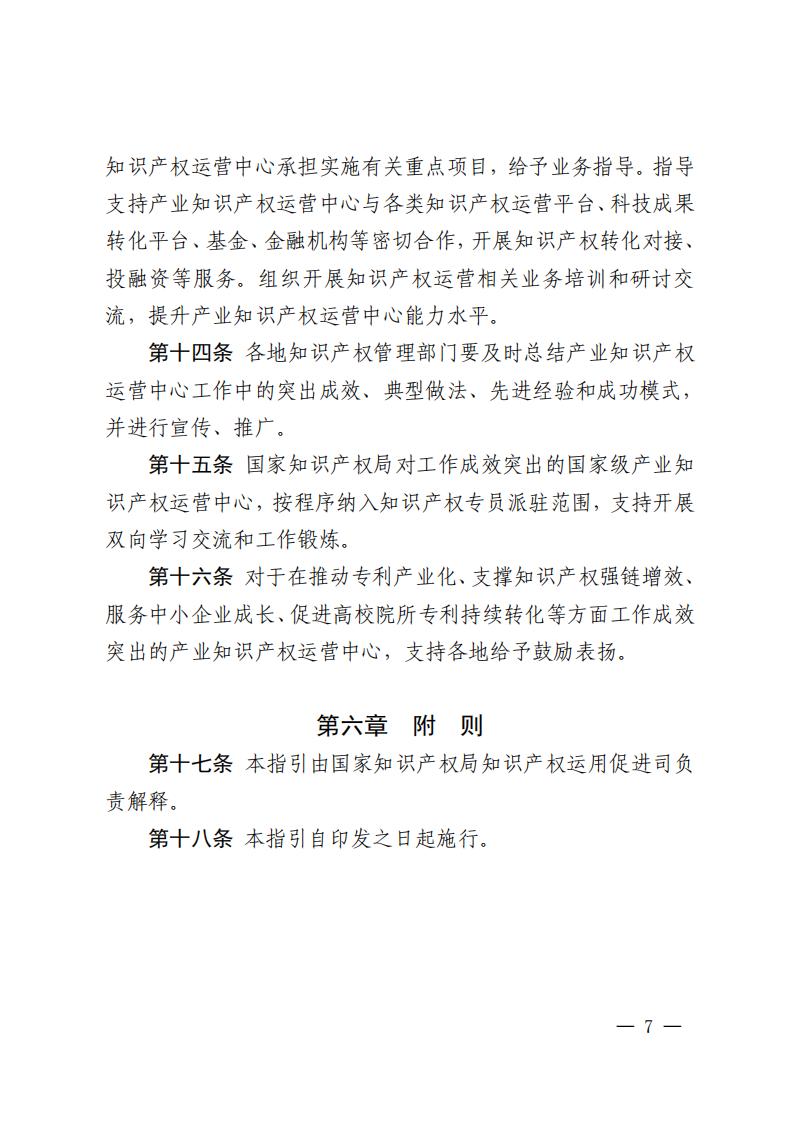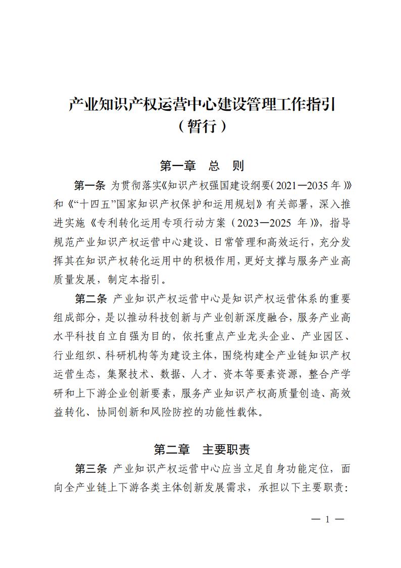 国家知识产权局印发《产业知识产权运营中心建设管理工作指引(暂行)》