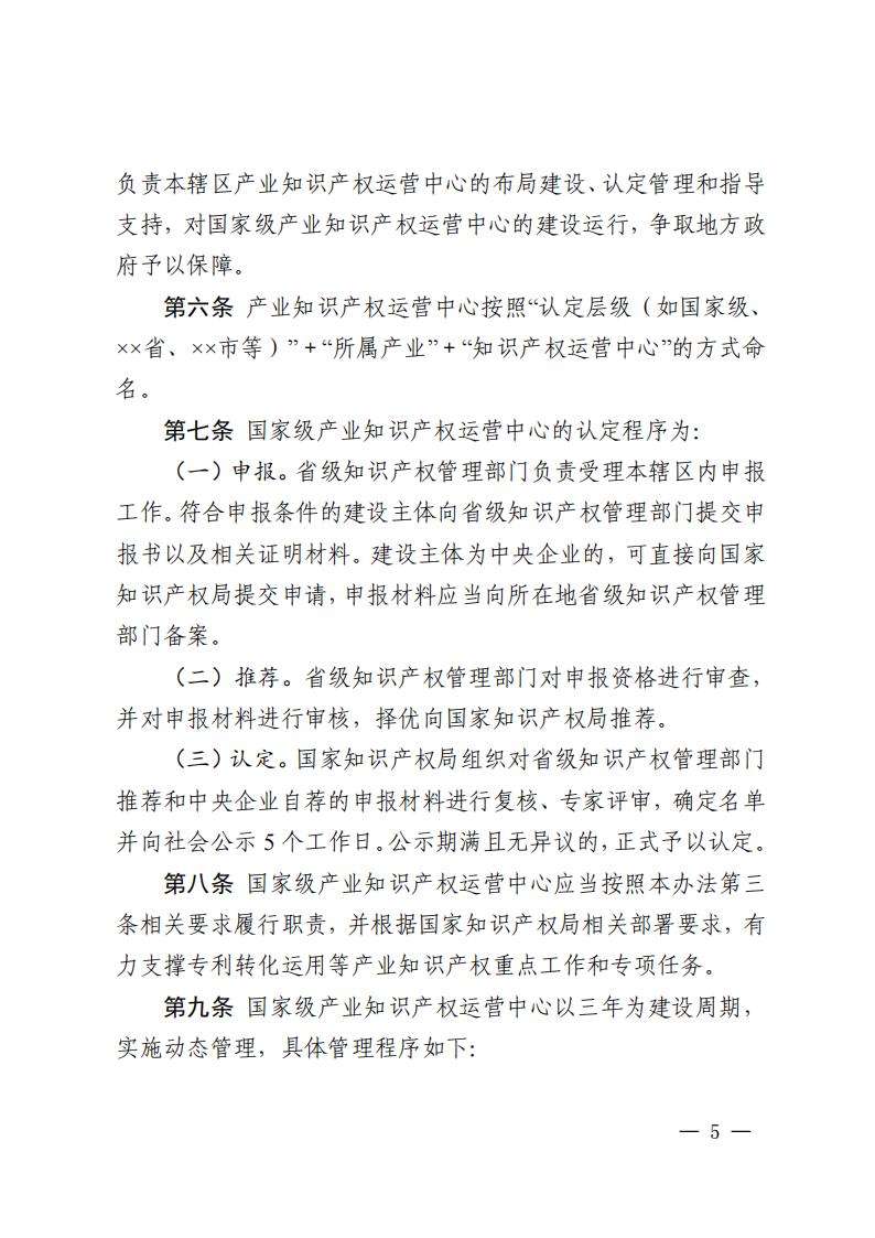 国家知识产权局办公室关于印发《产业知识产权运营中心建设管理工作指引(暂行)》的通知