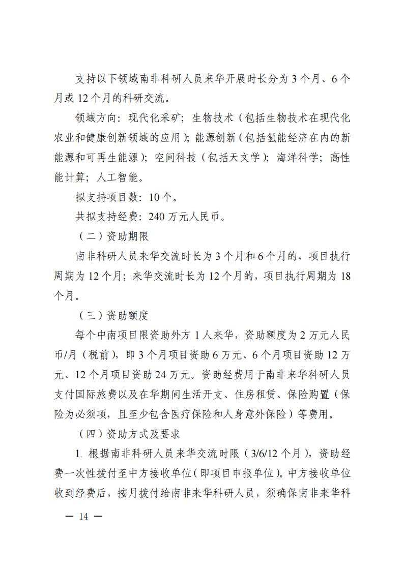 根据《国家重点研发计划管理暂行办法》(国科发资〔2024〕28号)相关要求,现发布“政府间国际科技创新合作”重点专项2025年度中新(加坡)、中泰(国)和中南(非)青年科研人员交流计划项目申报指南。请根据指南要求组织项目申报工作。有关事项通知如下。