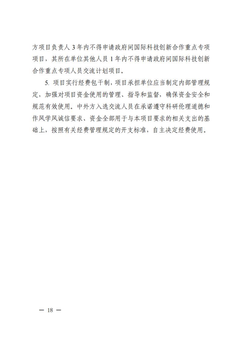 3. 本批次指南项目属于“政府间国际科技创新合作”重点专项人员交流类项目,不计入项目负责人申请和承担国家重点研发计划项目、国家科技重大专项(含科技创新2030—重大项目)的项目总数限项范围(不进行项目负责人限项联合审查),但项目负责人申请和在研的同一国别的人员交流类项目合计不得超过1项。
