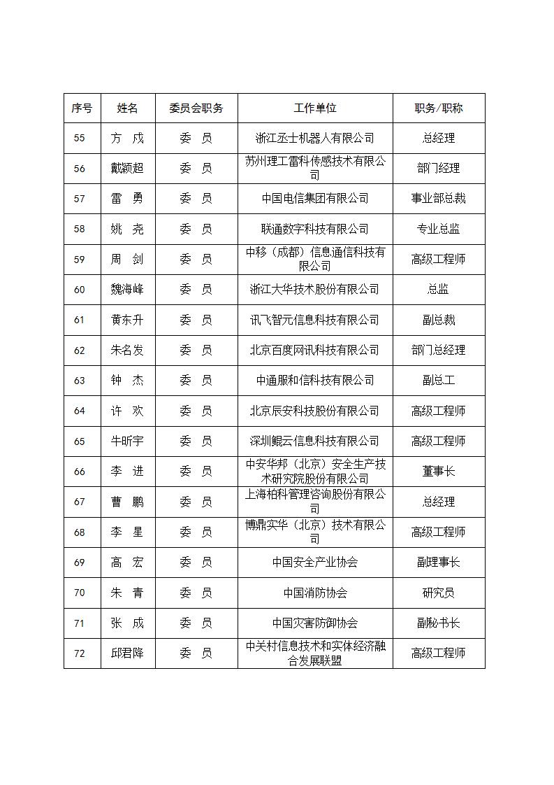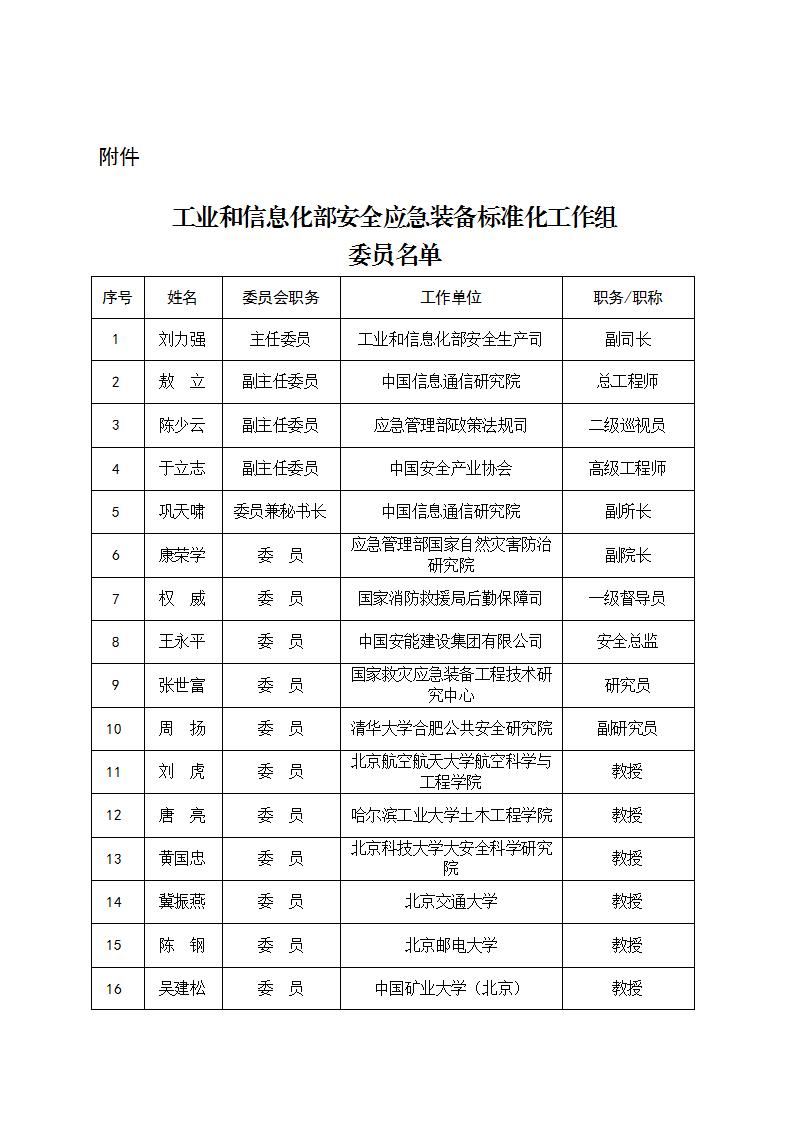 工业和信息化部安全应急装备标准化工作组委员名单公示