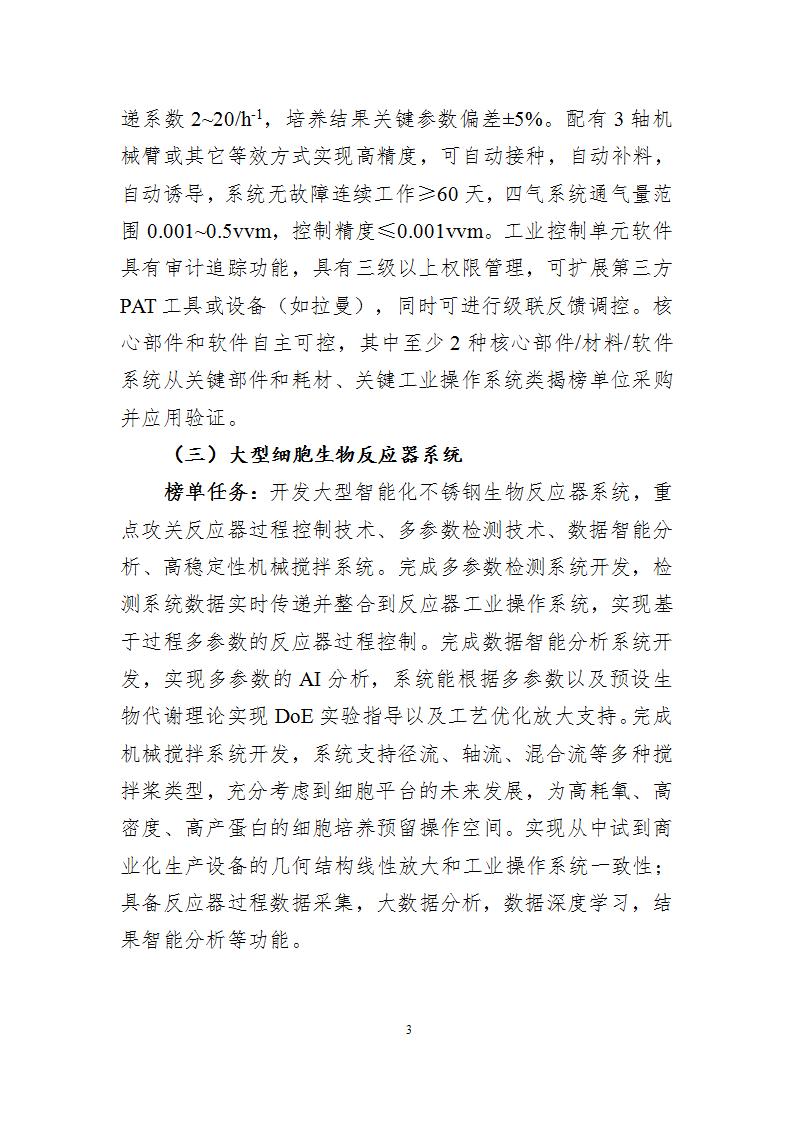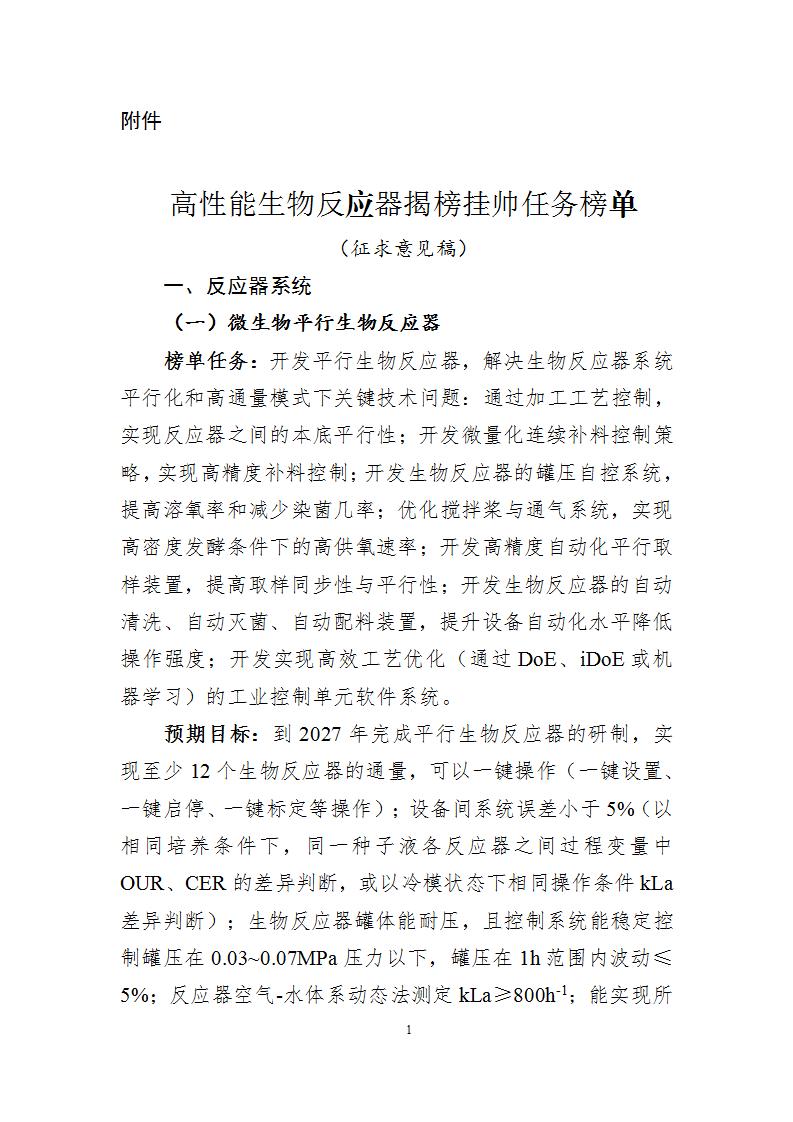 《高性能生物反应器揭榜挂帅任务榜单》公开征求意见