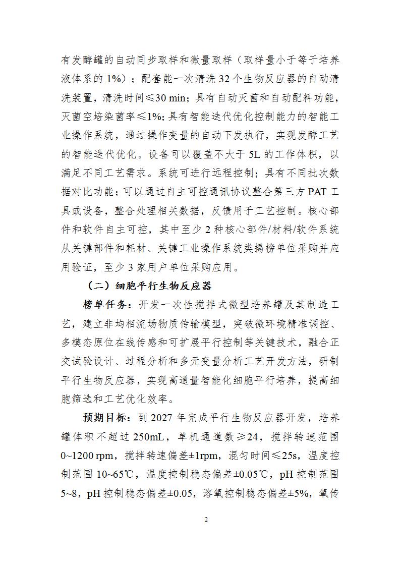 工信部|《高性能生物反应器揭榜挂帅任务榜单》公开征求意见