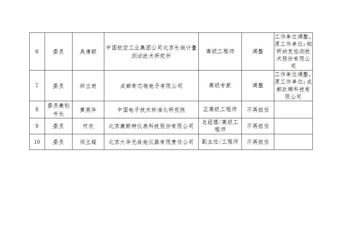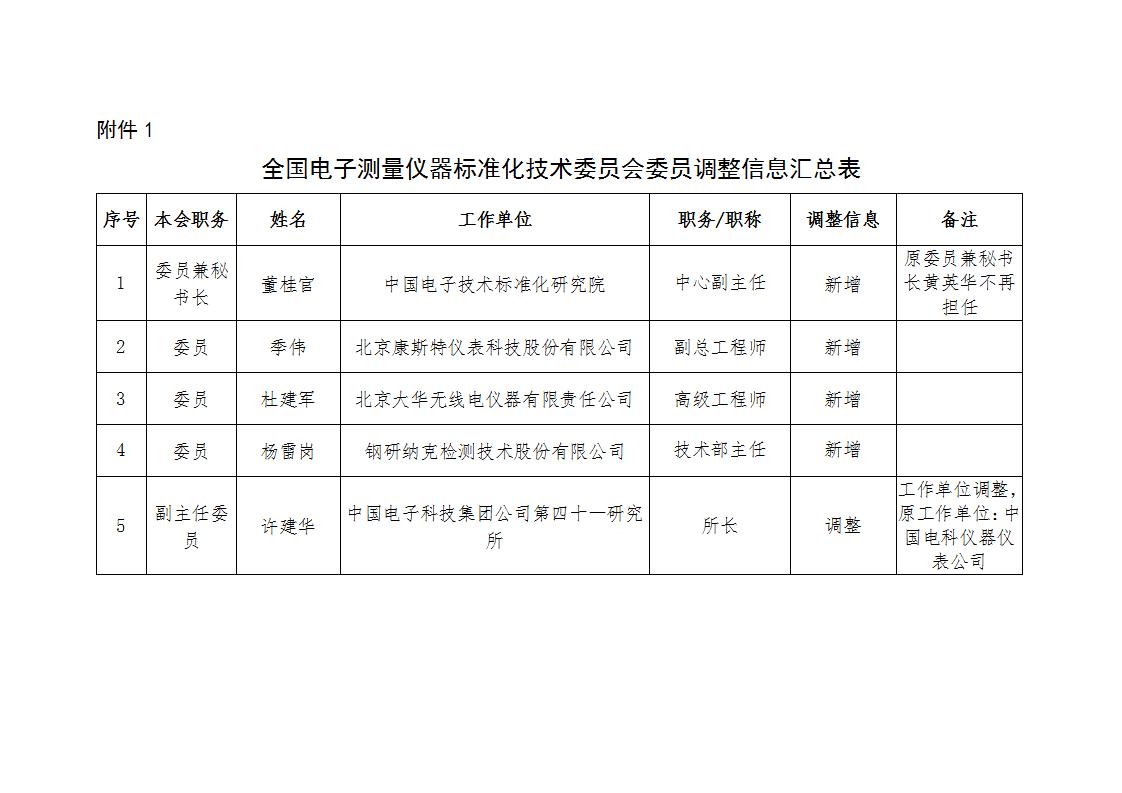附件:1.全国电子测量仪器标准化技术委员会委员调整信息汇总表