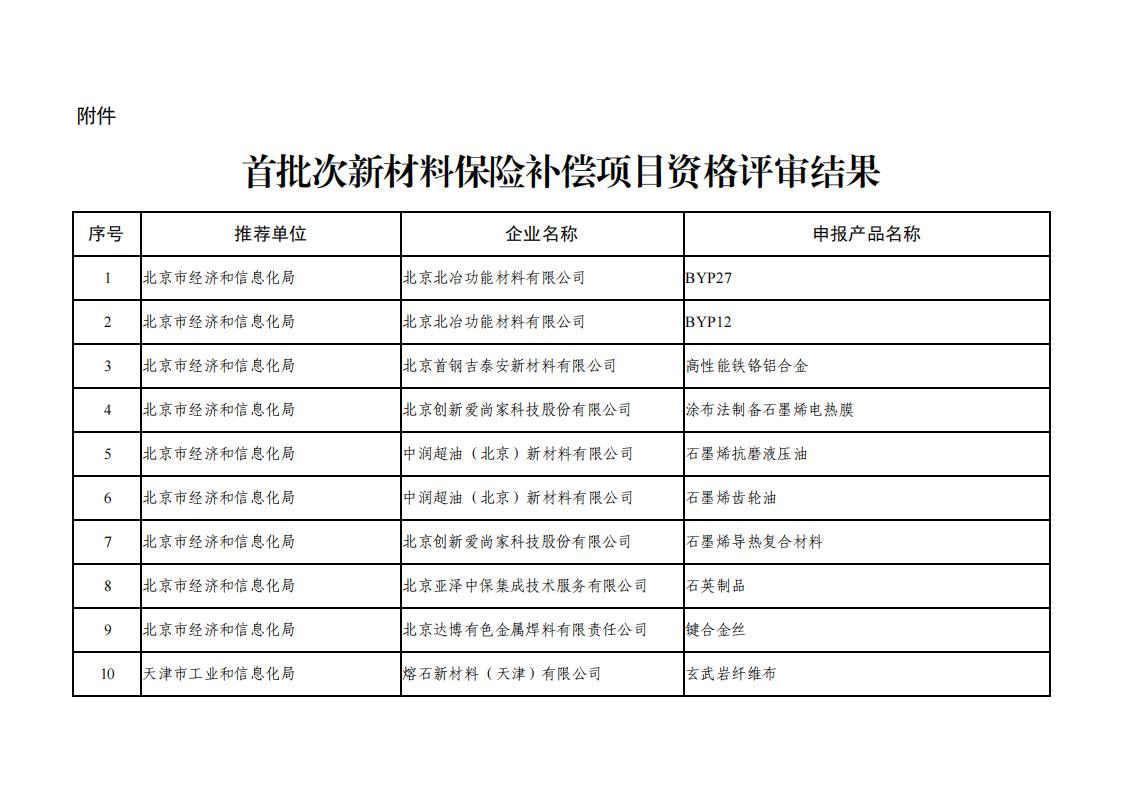 根据《关于进一步完善首台(套)重大技术装备首批次新材料保险补偿政策的意见》(工信部联重装〔2024〕89号),按照《关于组织开展2024年首批次新材料保险补偿资格审定工作的通知》(工信厅原函〔2024〕473号)要求,我部组织开展首批次新材料保险补偿项目资格评审工作,现将评审结果予以公示,公示期为2025年3月7日至3月14日。请社会各界监督。如有异议,请书面形式反馈。