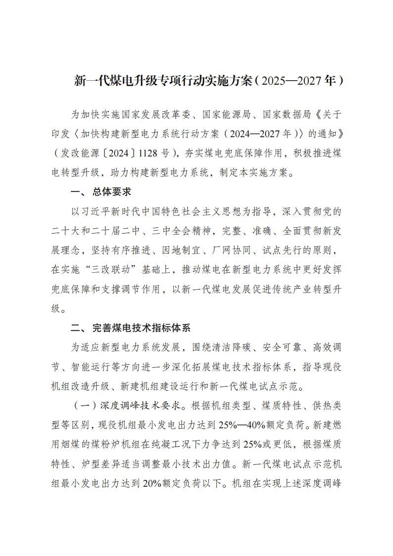 关于印发《新一代煤电升级专项行动实施方案(2025—2027年)》的通知(发改能源〔2025〕363号)
