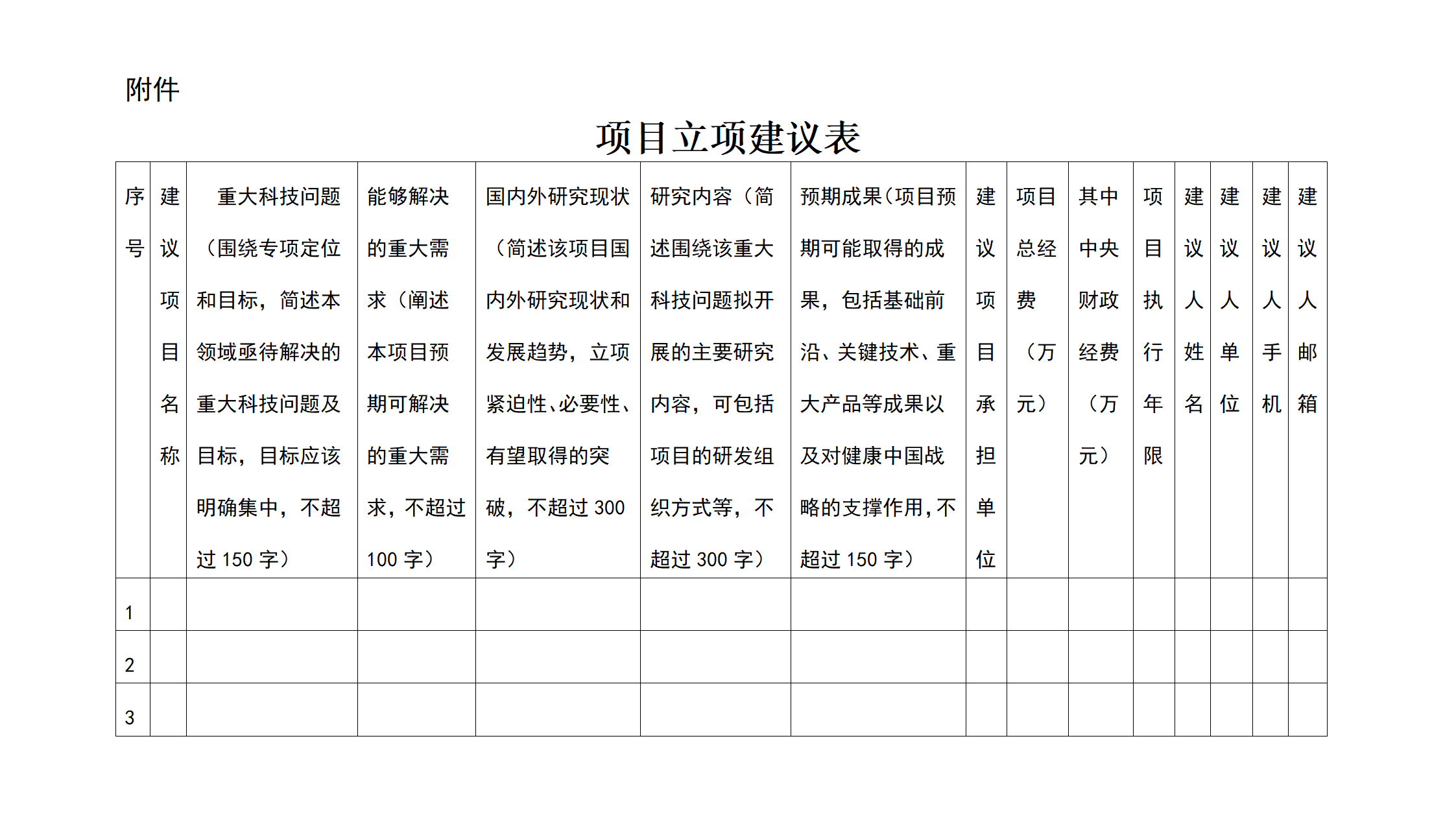 国家卫健委|关于公开征集“新发突发与重大传染病防控”国家科技重大专项立项建议的通知