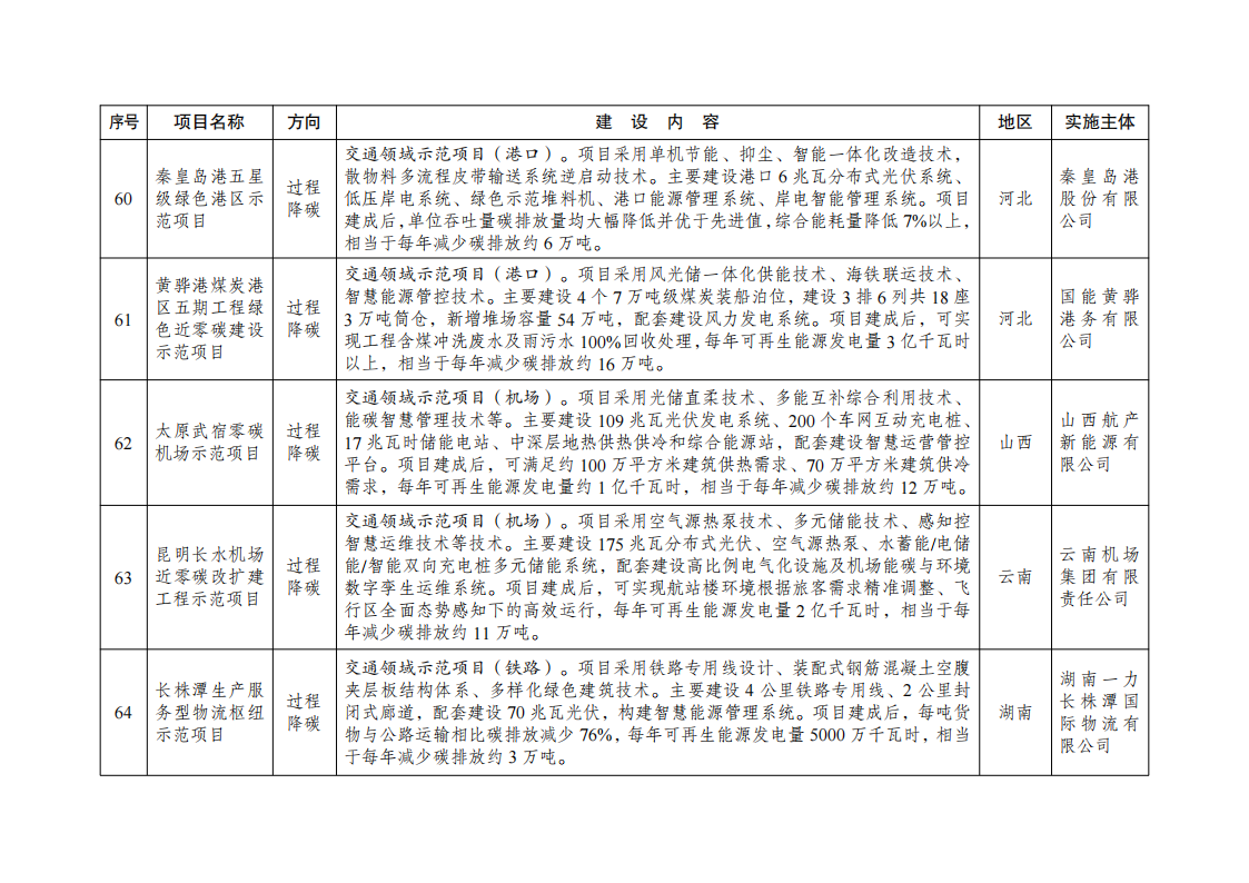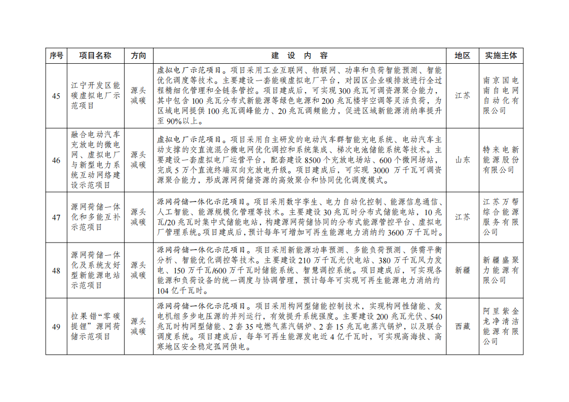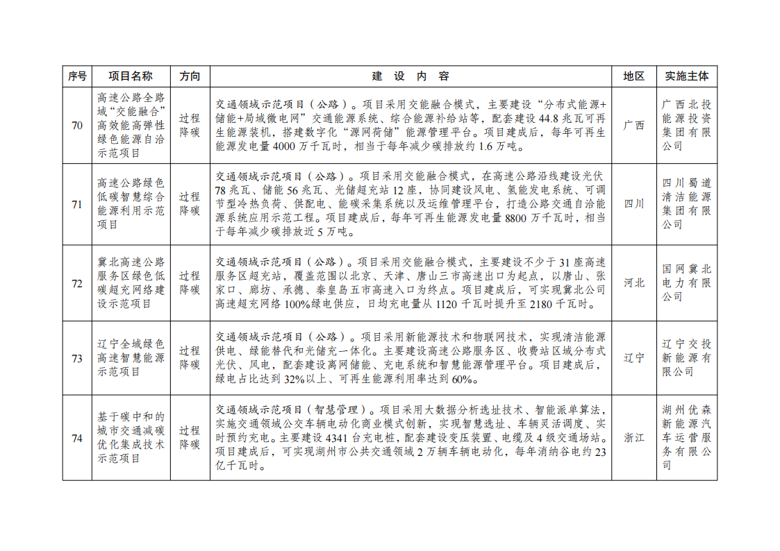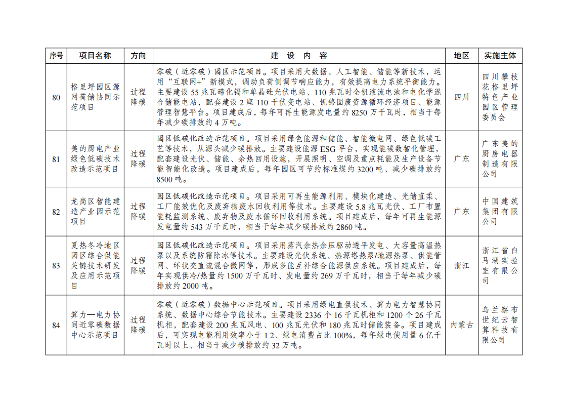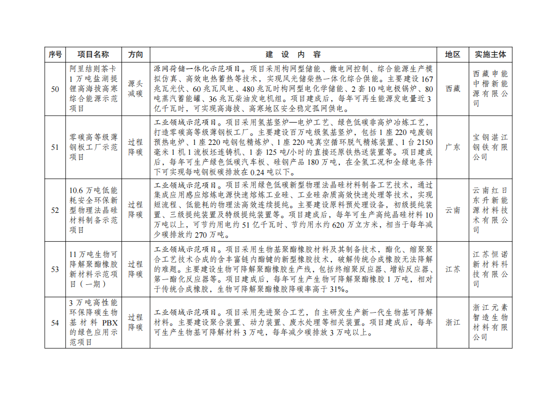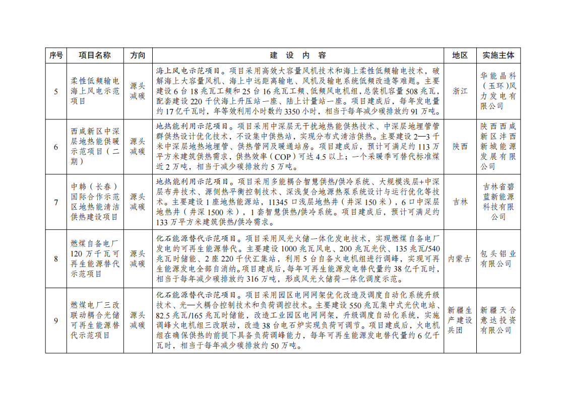 二、强化全流程监督管理。各地区发展改革委要持续跟踪调度示范项目建设进展,按期保质完成建设任务。对于建设进展缓慢、成效不及预期的项目,要加强督促指导帮扶,整改后仍未达到要求的,调整退出清单。根据我委调度和核查,将第一批示范项目清单中的第19项“基于纯氢燃气轮机创新的‘电—氢—电’新模式实证示范项目”(实施主体:国家电投集团北京重燃能源科技发展有限公司、内蒙古霍煤鸿骏铝电有限责任公司)退出绿色低碳先进技术示范工程。
