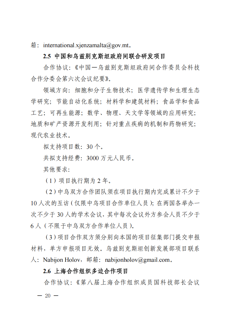“政府间国际科技创新合作”重点专项: